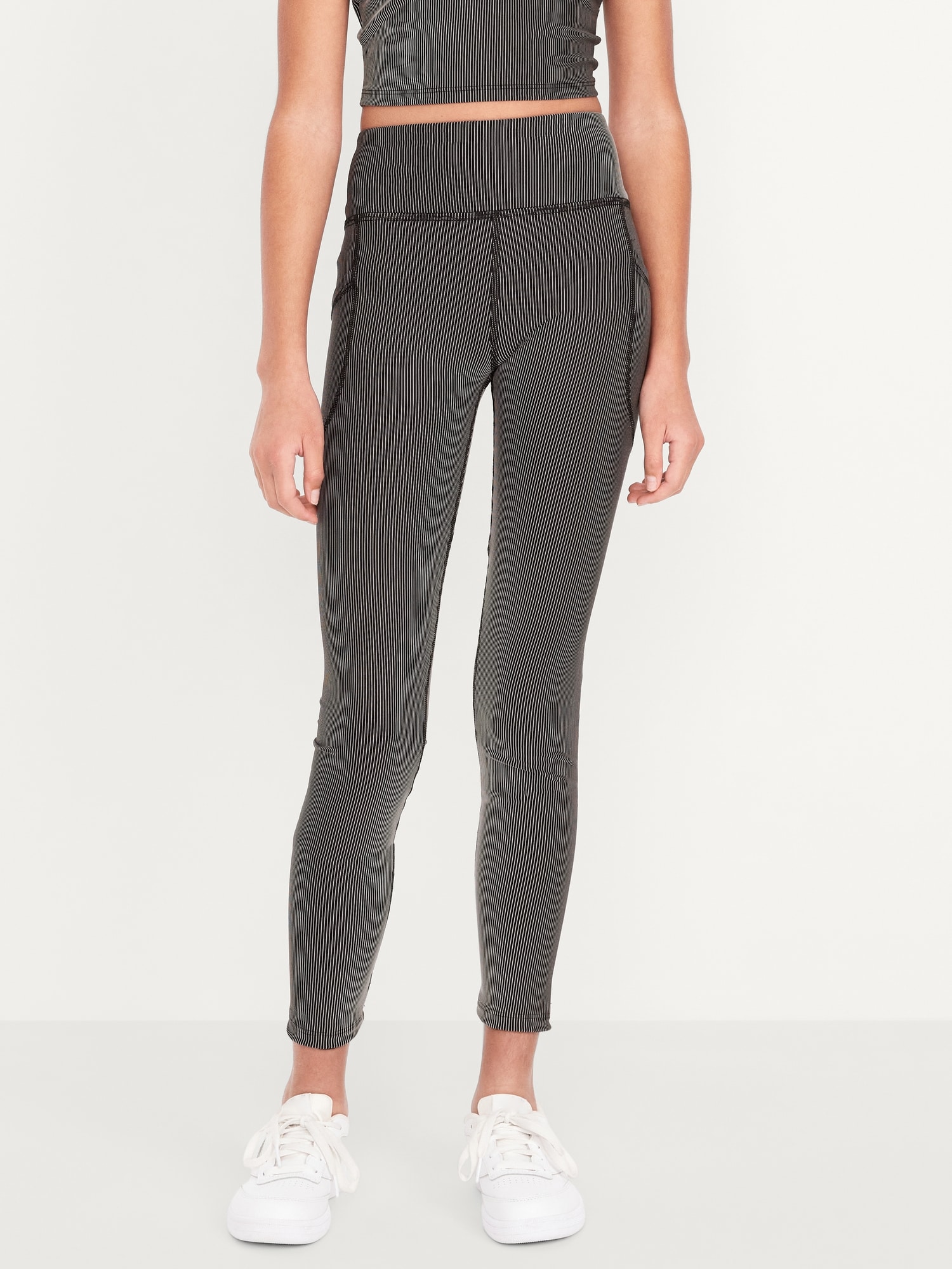 High-Waisted PowerSoft Ribbed Performance 7/8 Leggings for Girls: elasticized waistband, high-rise, light-reflecting logo at back, side pockets, #762169