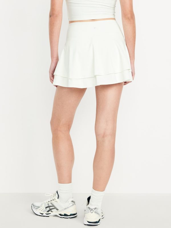 High-Waisted PowerSoft Skort: Featuring PowerSoft. Light compression meets a peachy-smooth, sweat-wicking fabric.elasticized waist, pocket fits your phone, built-in biker shorts, tiered ruffles at back, go-dry wicks moisture, #400173