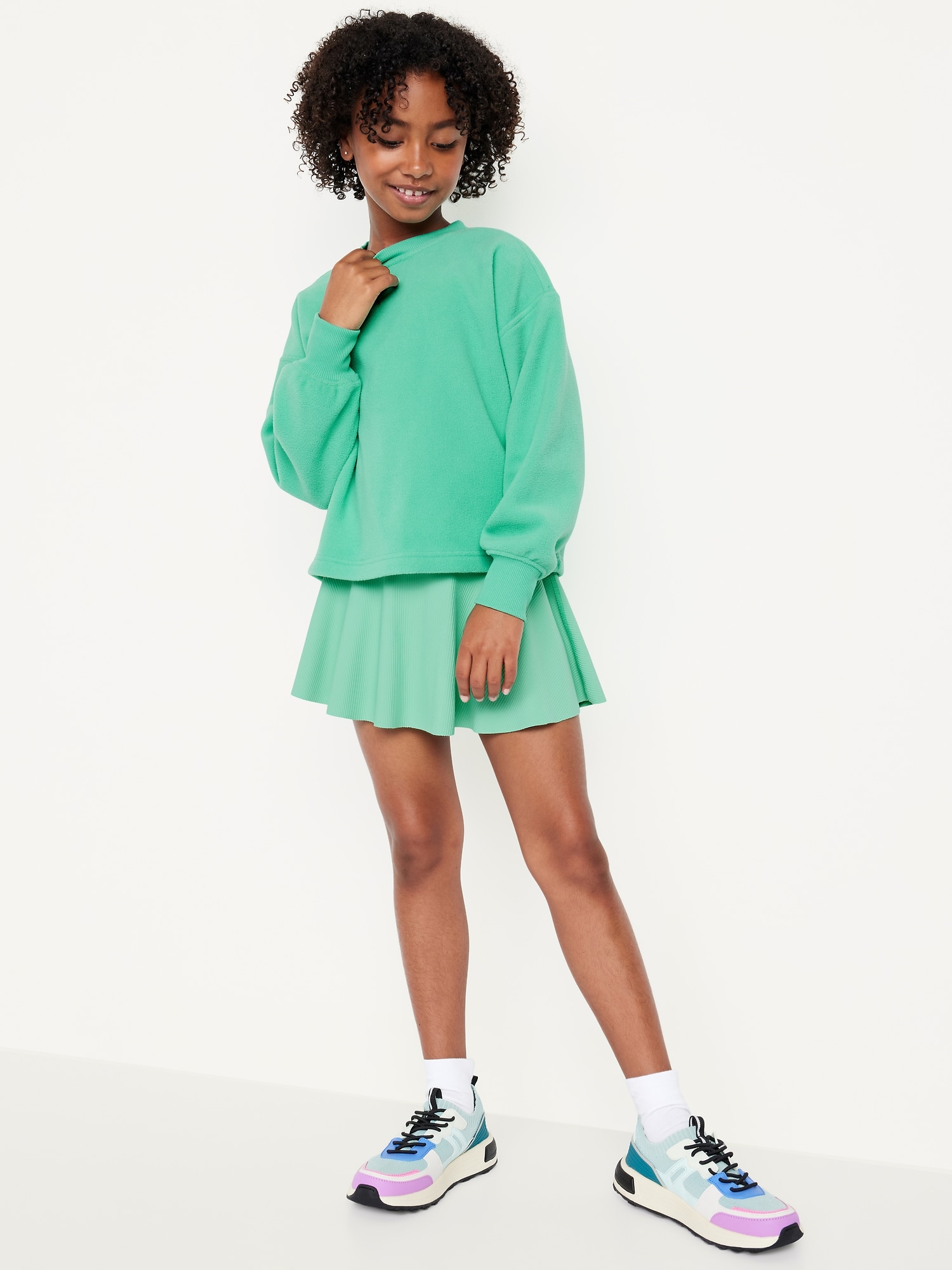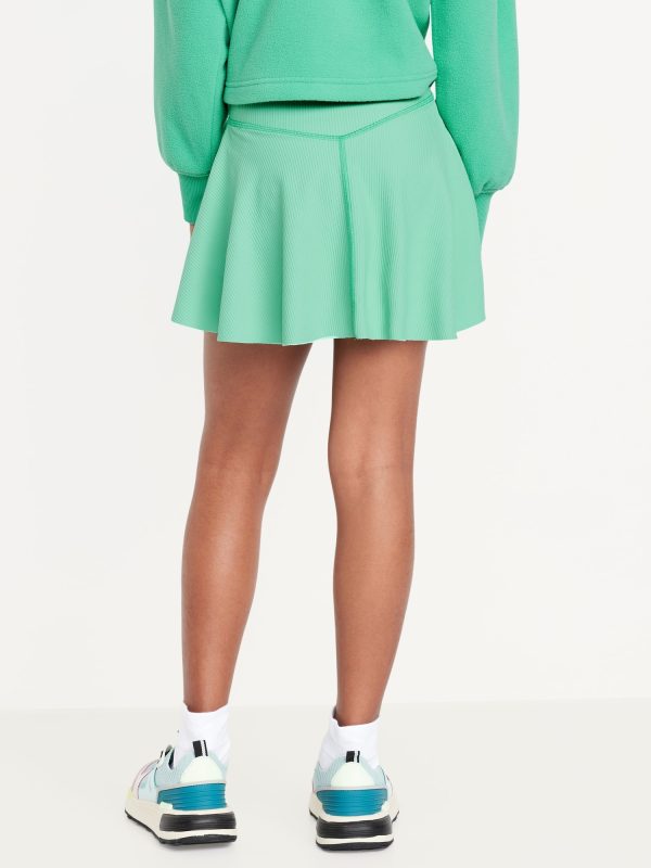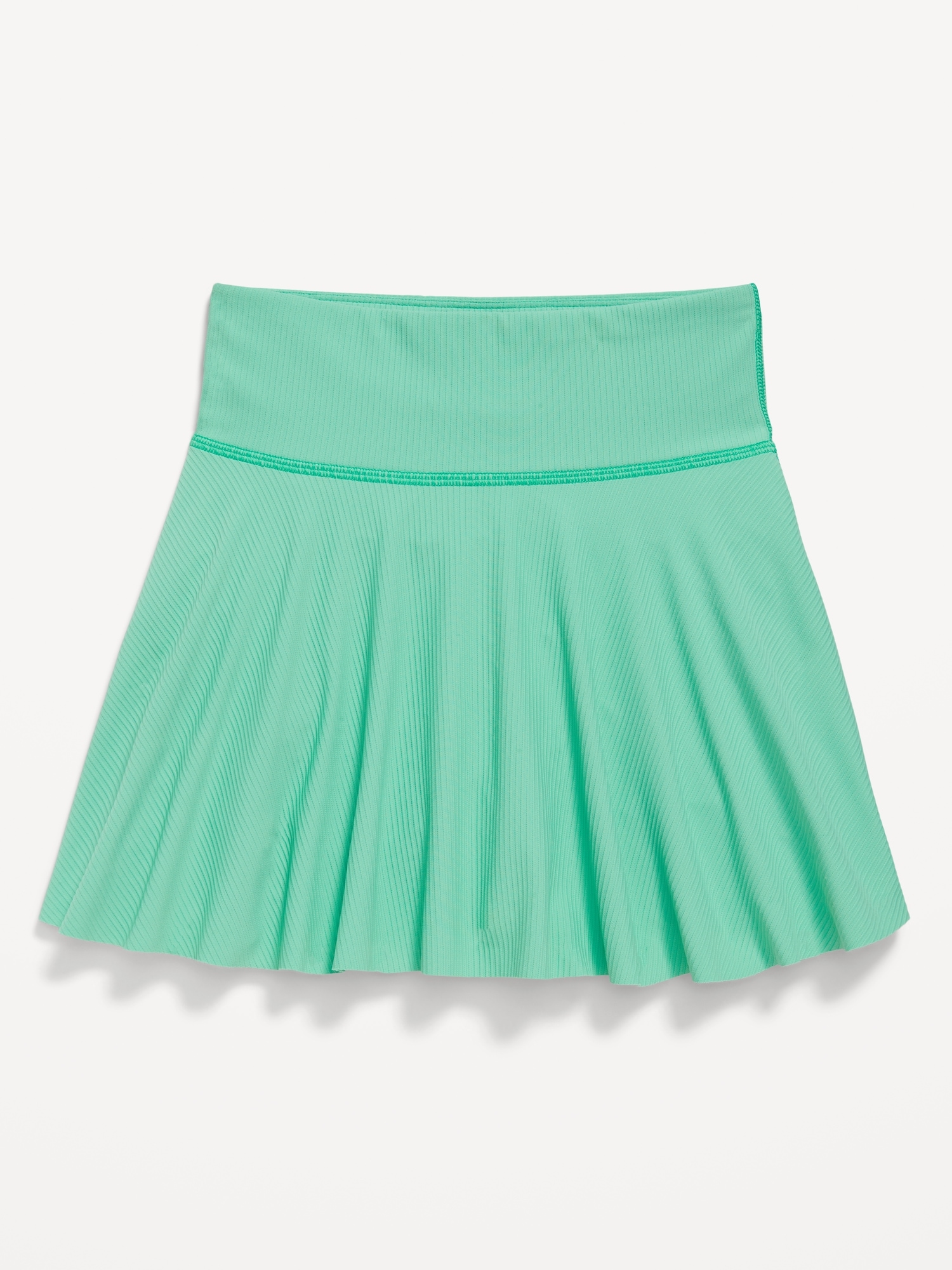 High-Waisted PowerSoft Skort for Girls: high-rise, elasticized waistband, reflective logo in back, mini-length skirt, built-in biker shorts, side pocket on shorts, easy pull-on style, #831549