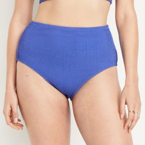 High-Waisted Ribbed Bikini Swim Bottoms: elasticized waist, elasticized leg openings, prints vary, #660456