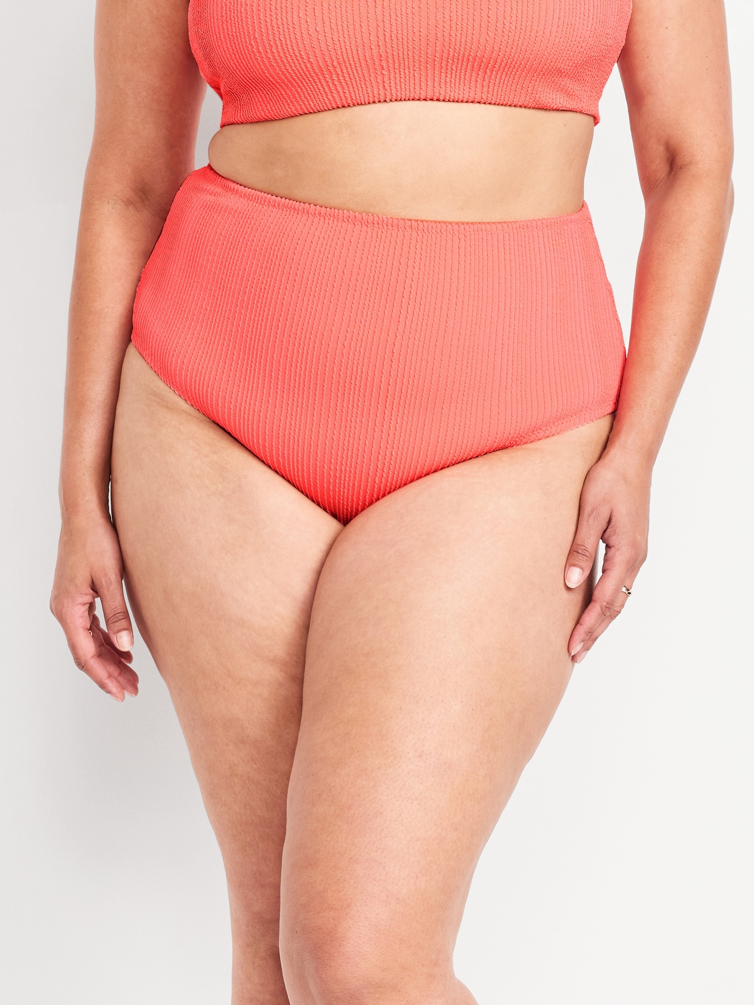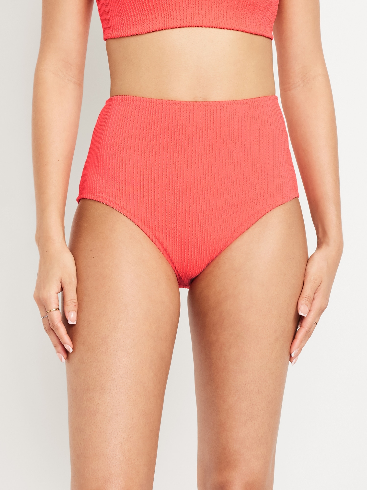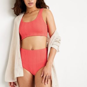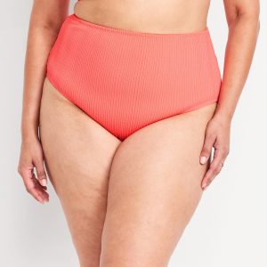High-Waisted Ribbed Bikini Swim Bottoms