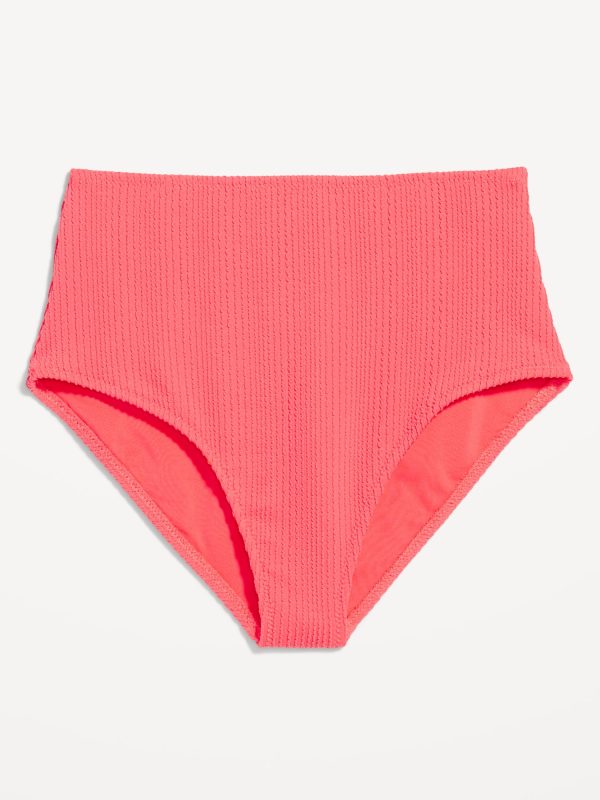 High-Waisted Ribbed Bikini Swim Bottoms: elasticized waist, elasticized leg openings, prints vary, #660456