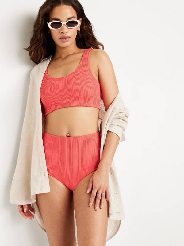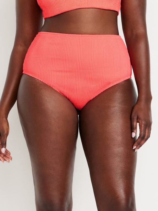 High-Waisted Ribbed Bikini Swim Bottoms