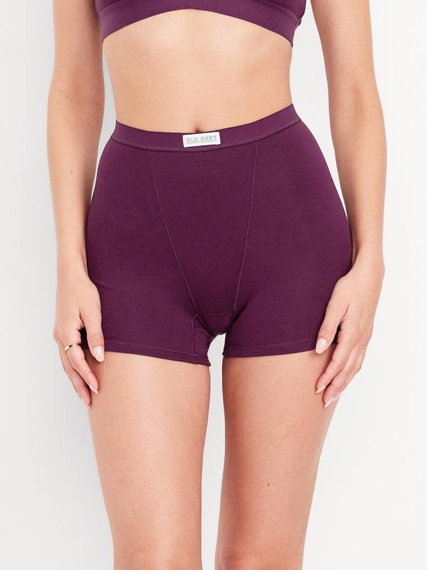 High-Waisted Ribbed Boyshort Briefs — 3-inch inseam: brushed elastic waistband, pull-on style, gusseted, #558760