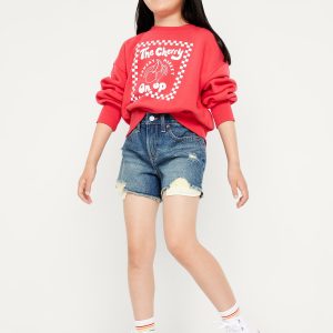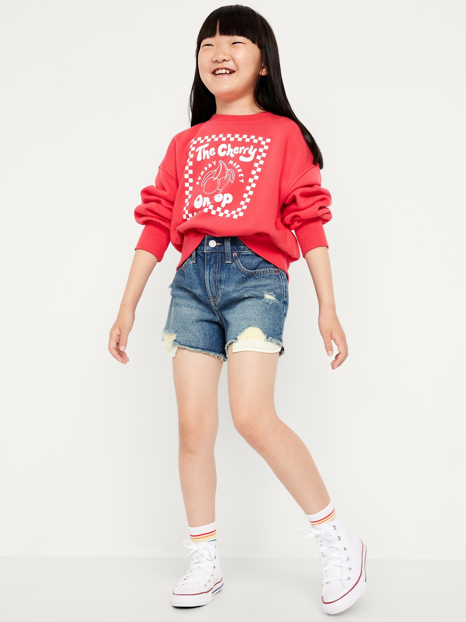 High-Waisted Ripped Frayed-Hem Jean Shorts for Girls
