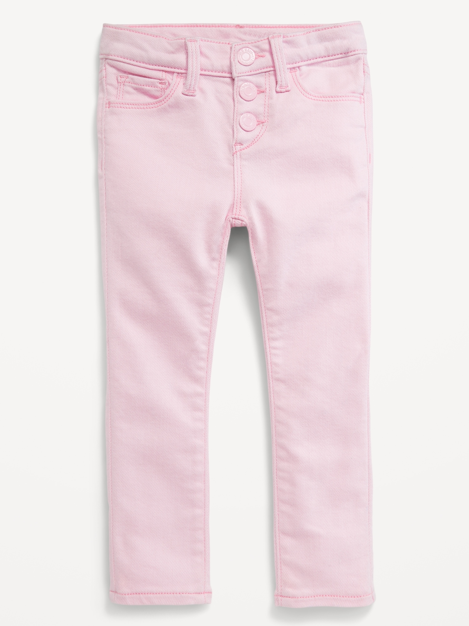 High-Waisted Rockstar 360° Stretch Button-Fly Jeggings for Toddler Girls: interior adjustable waistband, elasticized back waist, faux fly, snap-button closure, scoop pockets and coin pocket at front, patch pockets at back, #865995