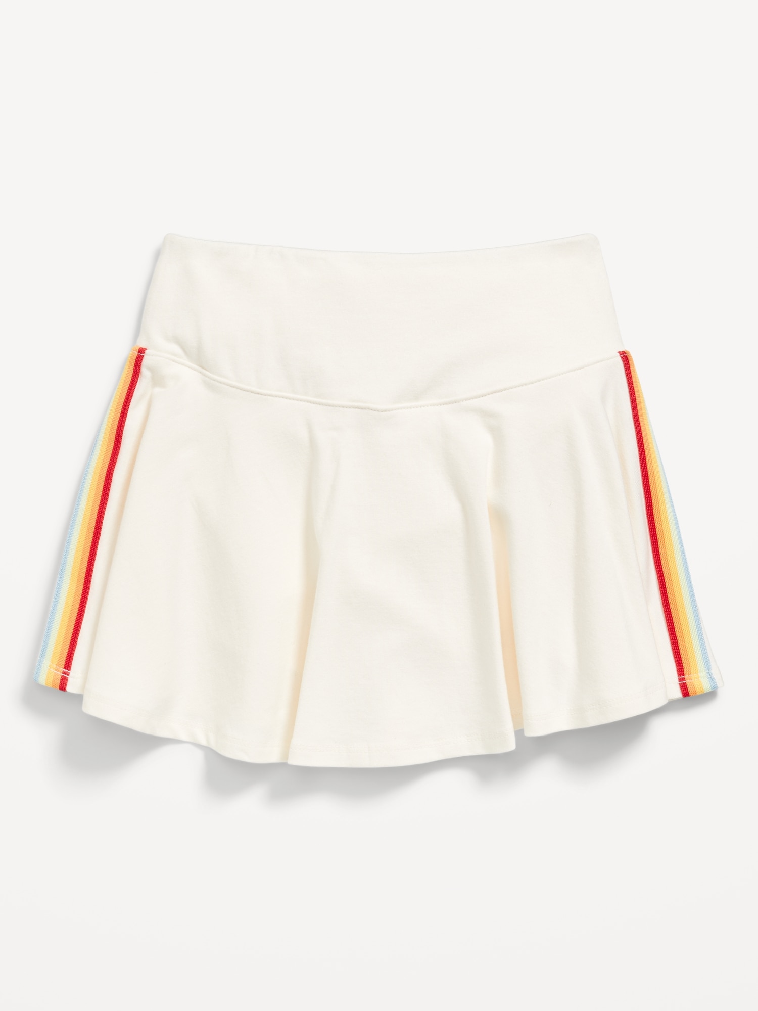 High-Waisted Skort for Girls: built-in biker shorts, high-rise, elasticized waistband, mini-length skirt, easy pull-on style, #693658