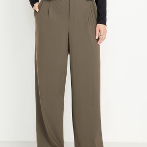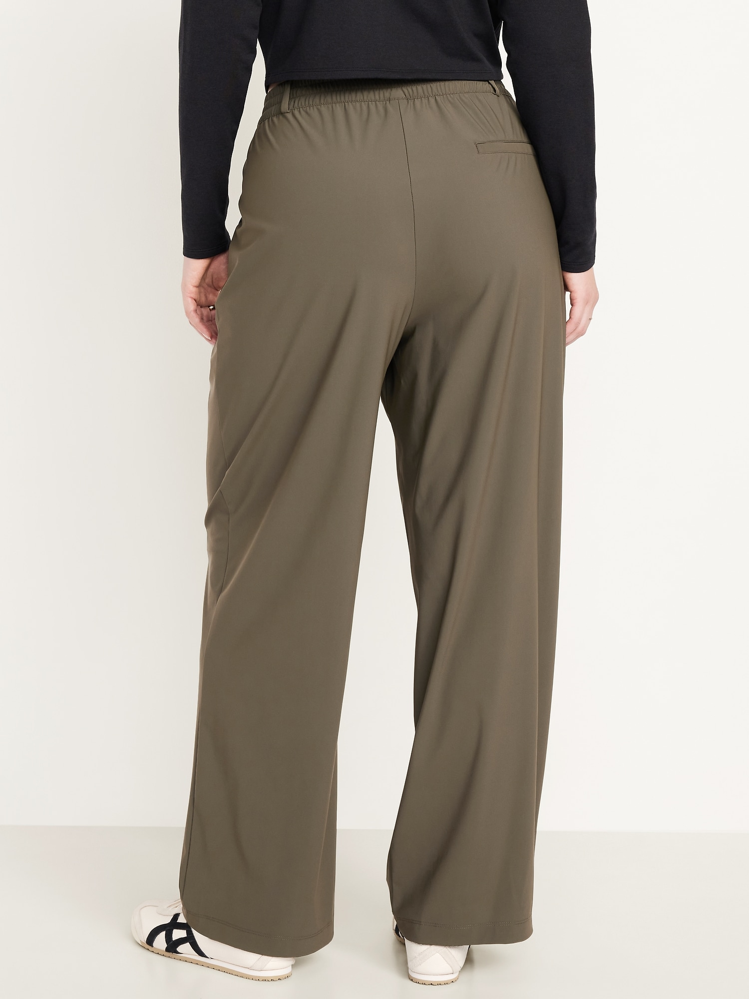 High-Waisted SleekTech Trouser Pants: Featuring SleekTech. Polished and lightweight, with serious stretch.high waist with belt loops, elastic back waist, functional zip fly, diagonal hip pockets, faux-welt back pocket, go-dry wicks moisture, #784434