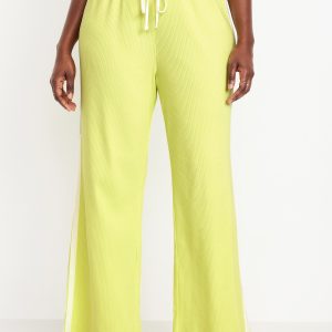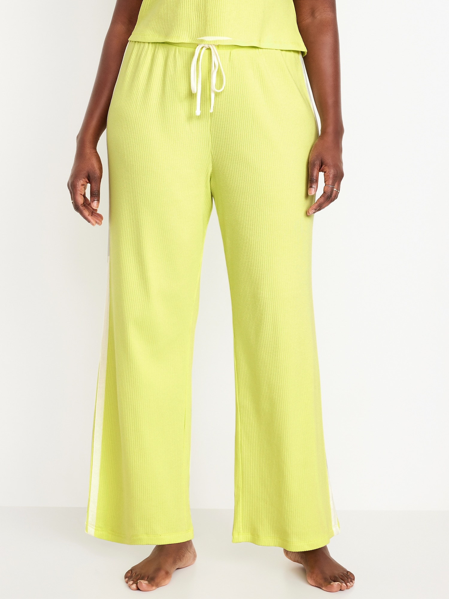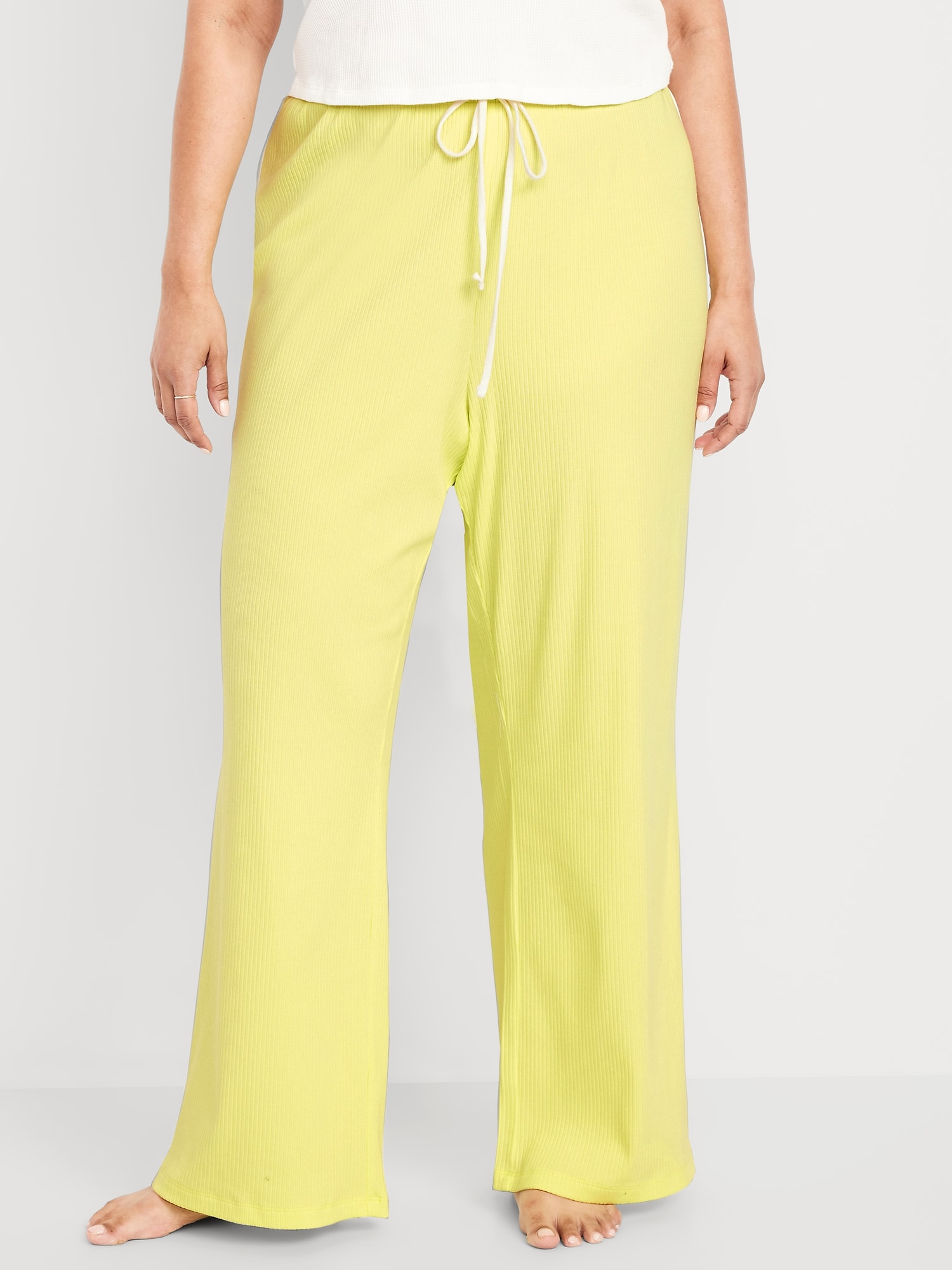 High-Waisted Slouchy Lounge Pants: elastic-drawstring waistband, slouchy barrel leg, pull-on style, floral print, #766757