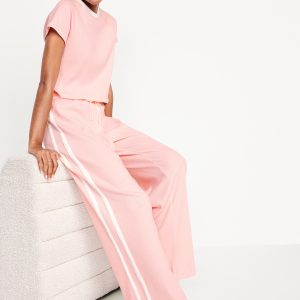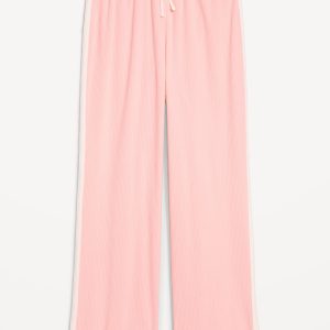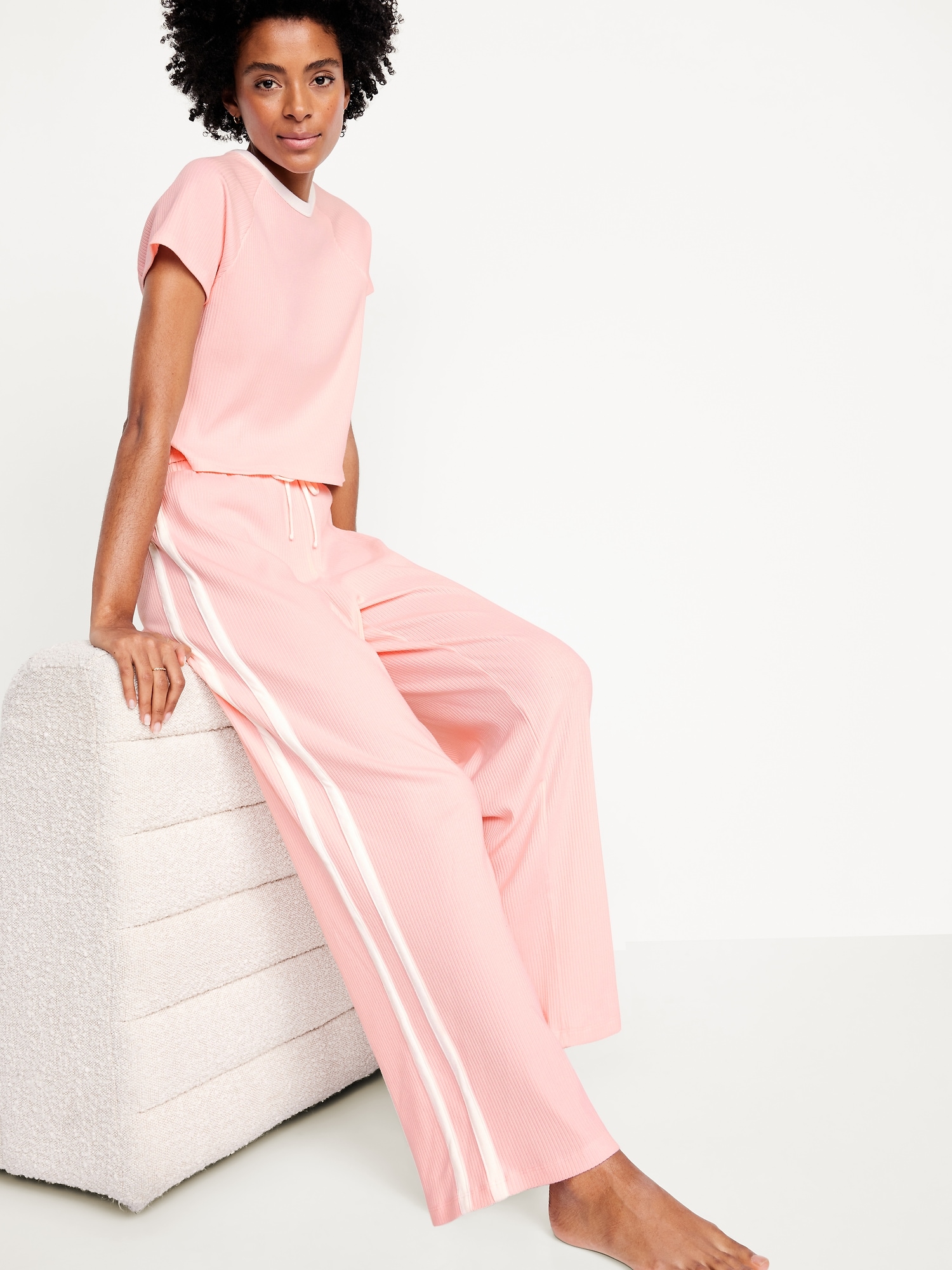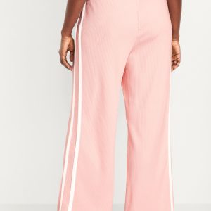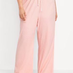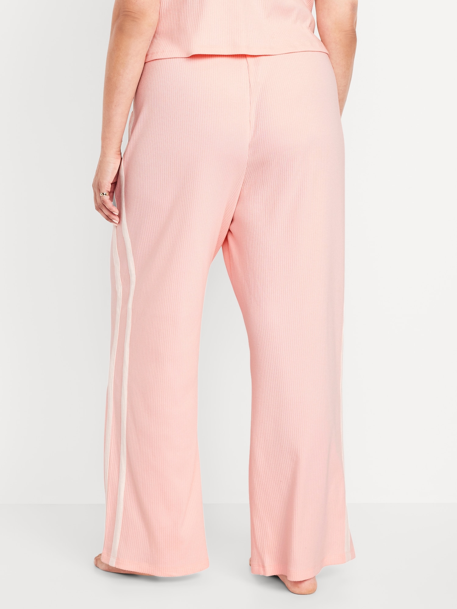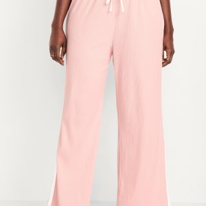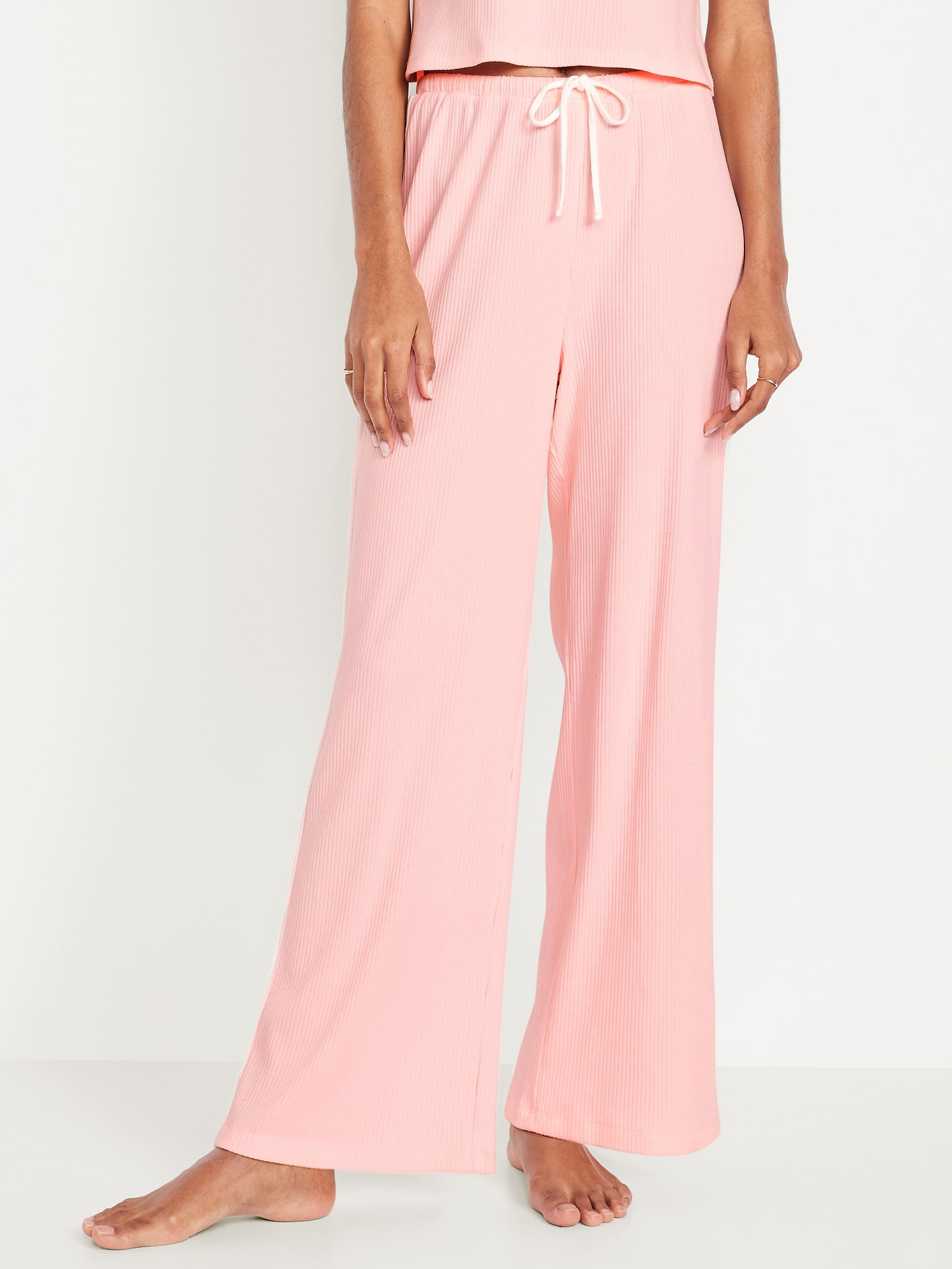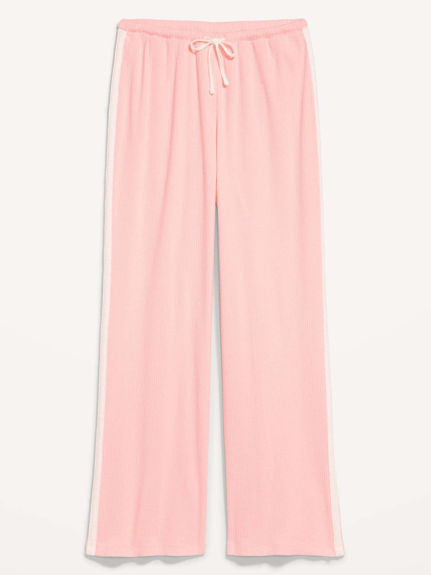 High-Waisted Slouchy Lounge Pants: elastic-drawstring waistband, slouchy barrel leg, pull-on style, floral print, #766757
