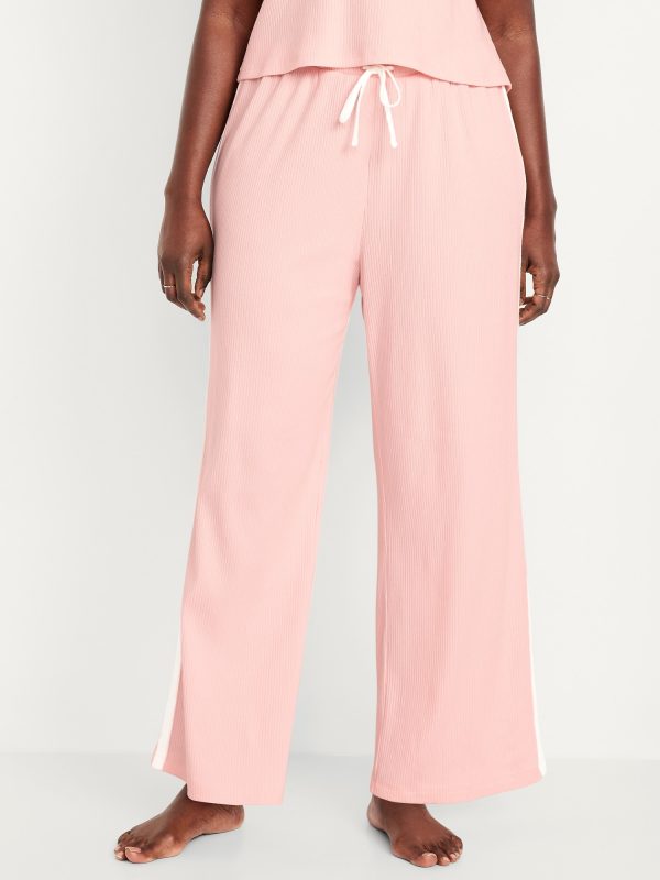 High-Waisted Slouchy Lounge Pants: elastic-drawstring waistband, slouchy barrel leg, pull-on style, floral print, #766757