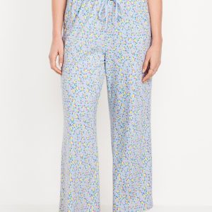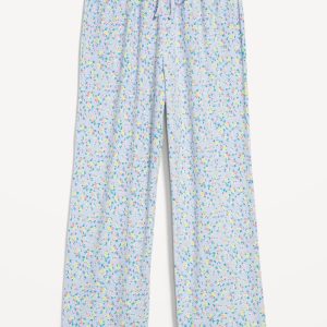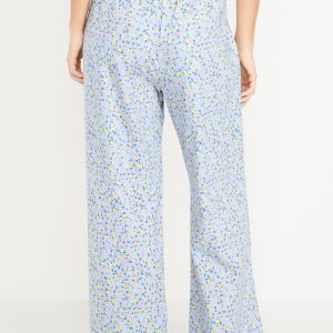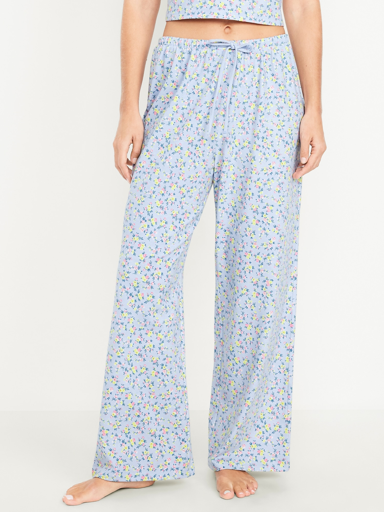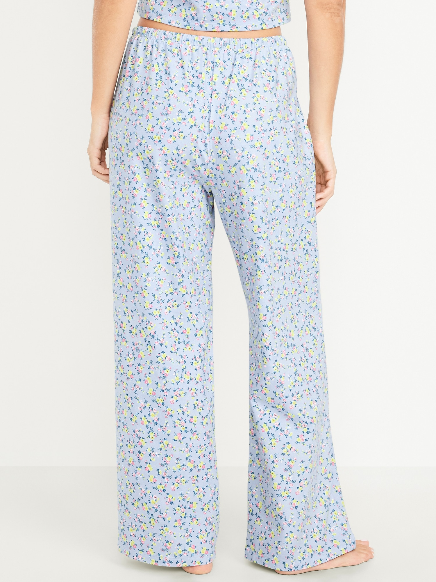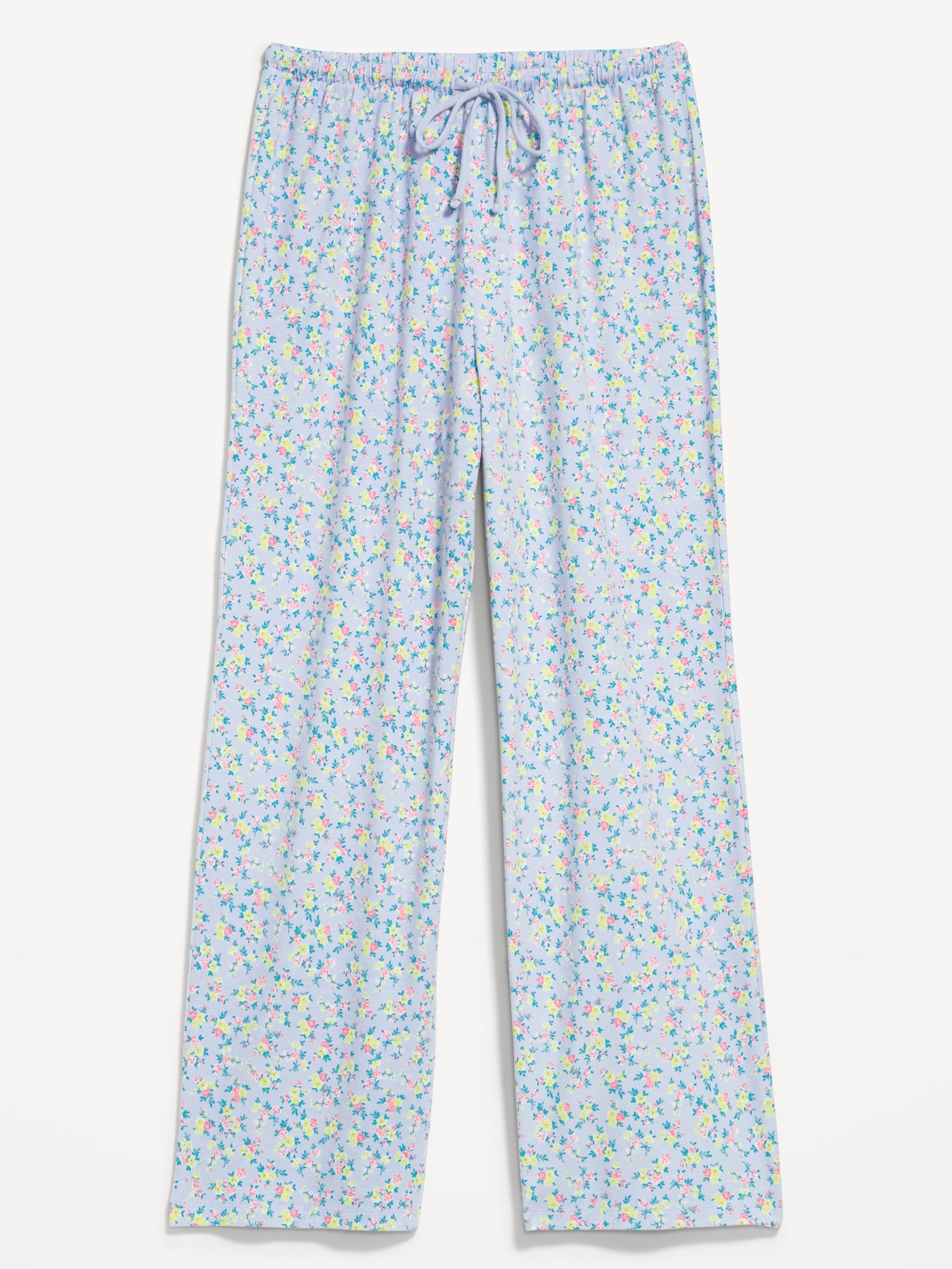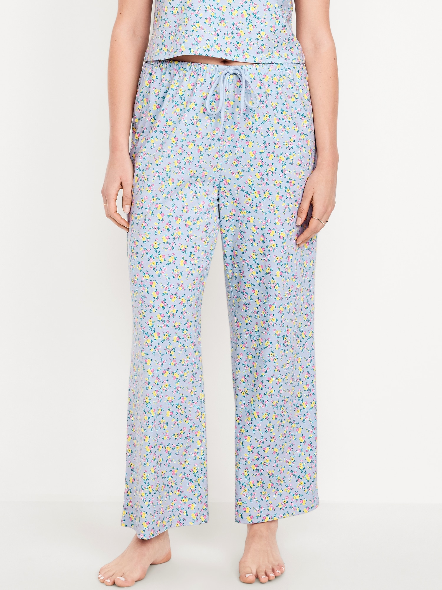 High-Waisted Slouchy Lounge Pants: elastic-drawstring waistband, slouchy barrel leg, pull-on style, floral print, #766757