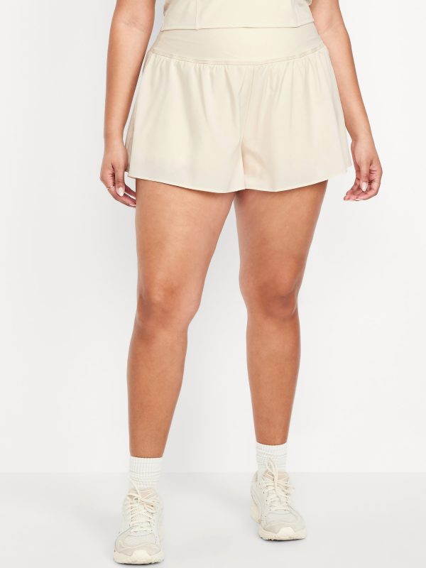 High-Waisted StretchTech 2-in-1 Shorts — 3-inch inseam: Featuring StretchTech. Moisture-wicking and endlessly versatile.high pull-on waistband, built-in bike shorts with side pocket, flouncy outer shorts, go-dry wicks moisture, breathable, #748677