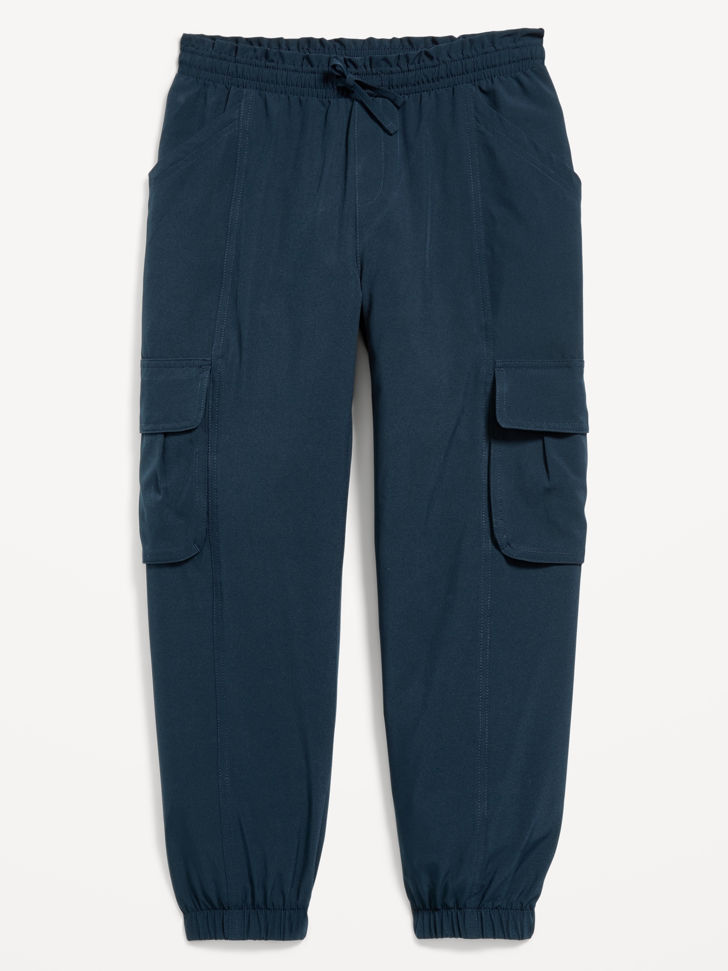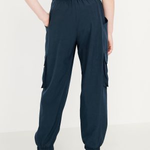 High-Waisted StretchTech Performance Joggers for Girls: high rise, elasticized waistband, functional drawstring, diagonal utility pockets, cargo flap pockets at each leg, cinched leg cuffs, #766991