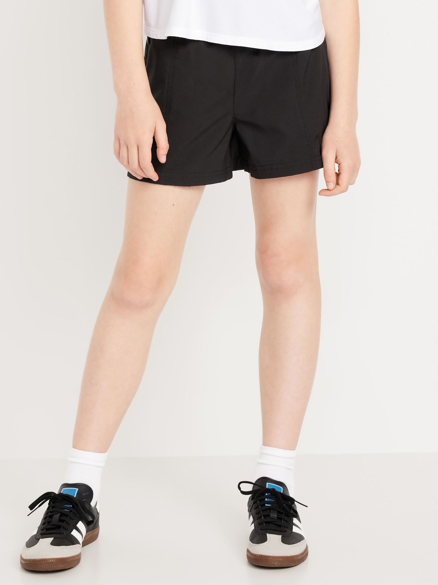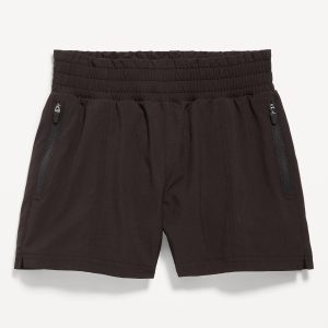 High-Waisted StretchTech Performance Shorts for Girls: high rise, elasticized waistband, zippered welt pockets, front seams, #762166