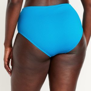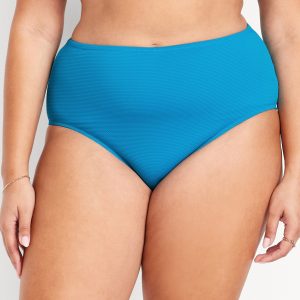 High-Waisted Textured Bikini Swim Bottoms: elasticized waist, elasticized leg openings, prints vary, #660456