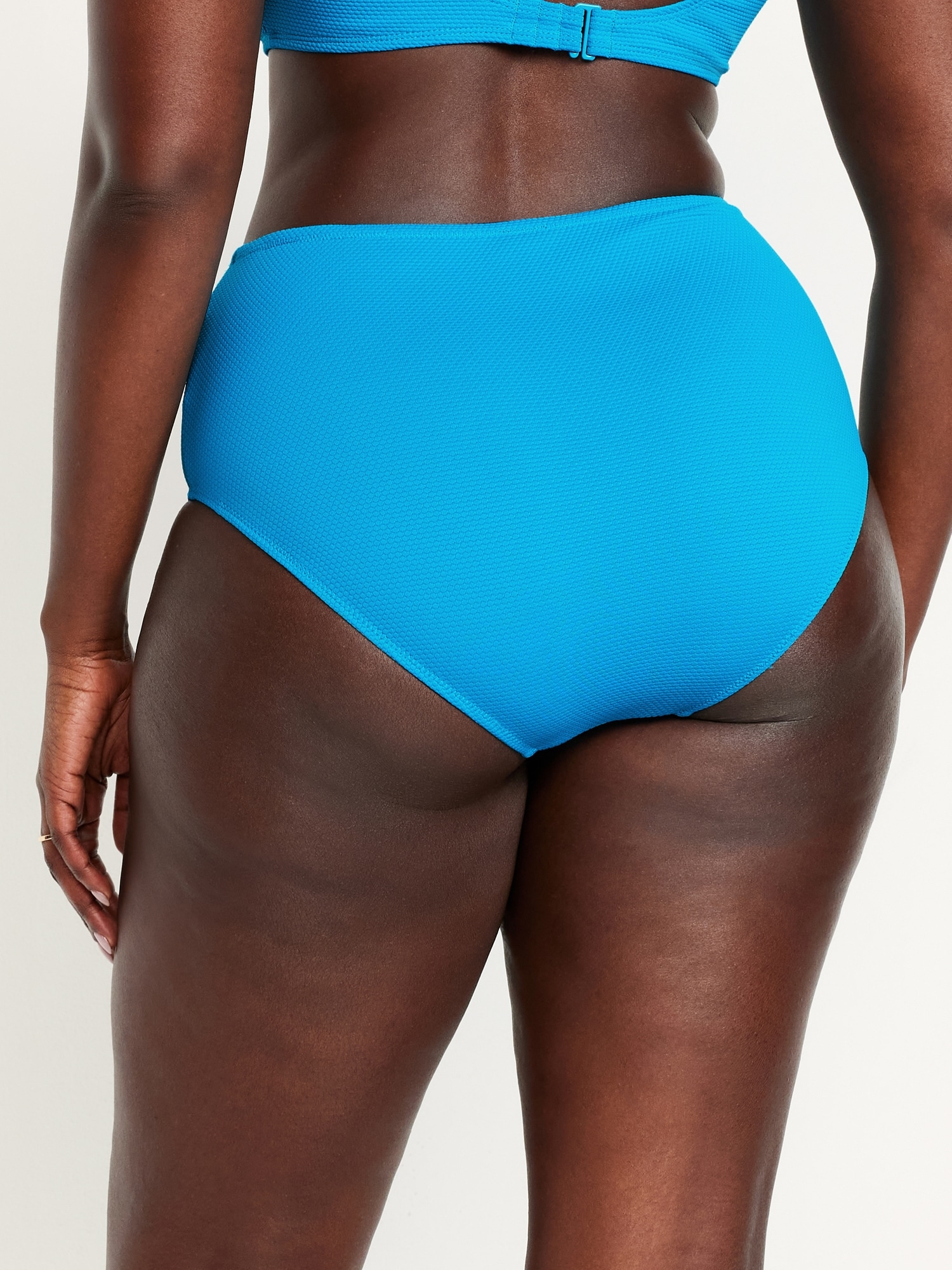 High-Waisted Textured Bikini Swim Bottoms