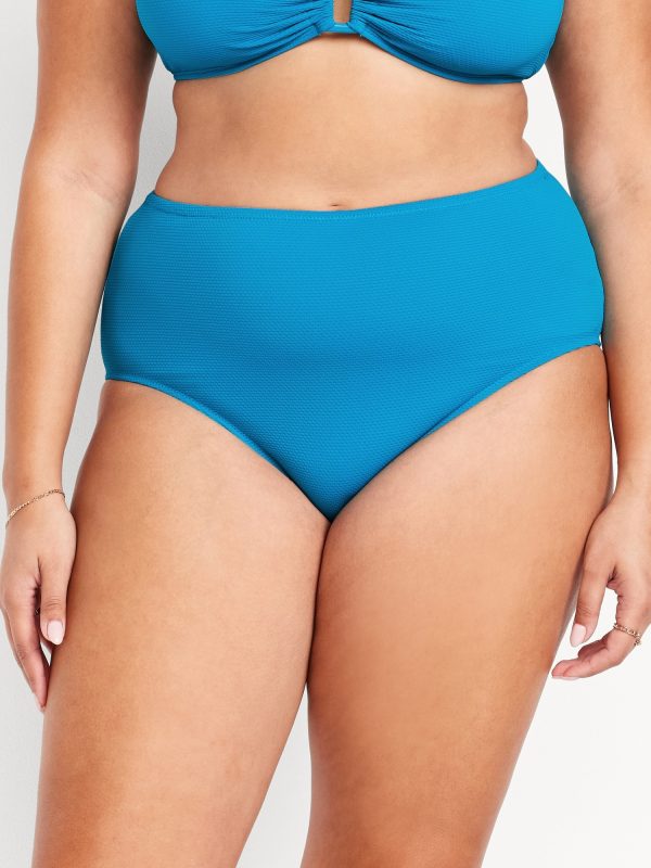 High-Waisted Textured Bikini Swim Bottoms