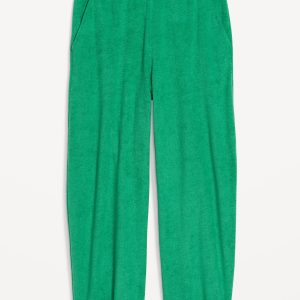 High-Waisted Towel Terry Barrel Ankle Pants: elastic waistband, on-seam pockets, cuffed barrel leg, #749658