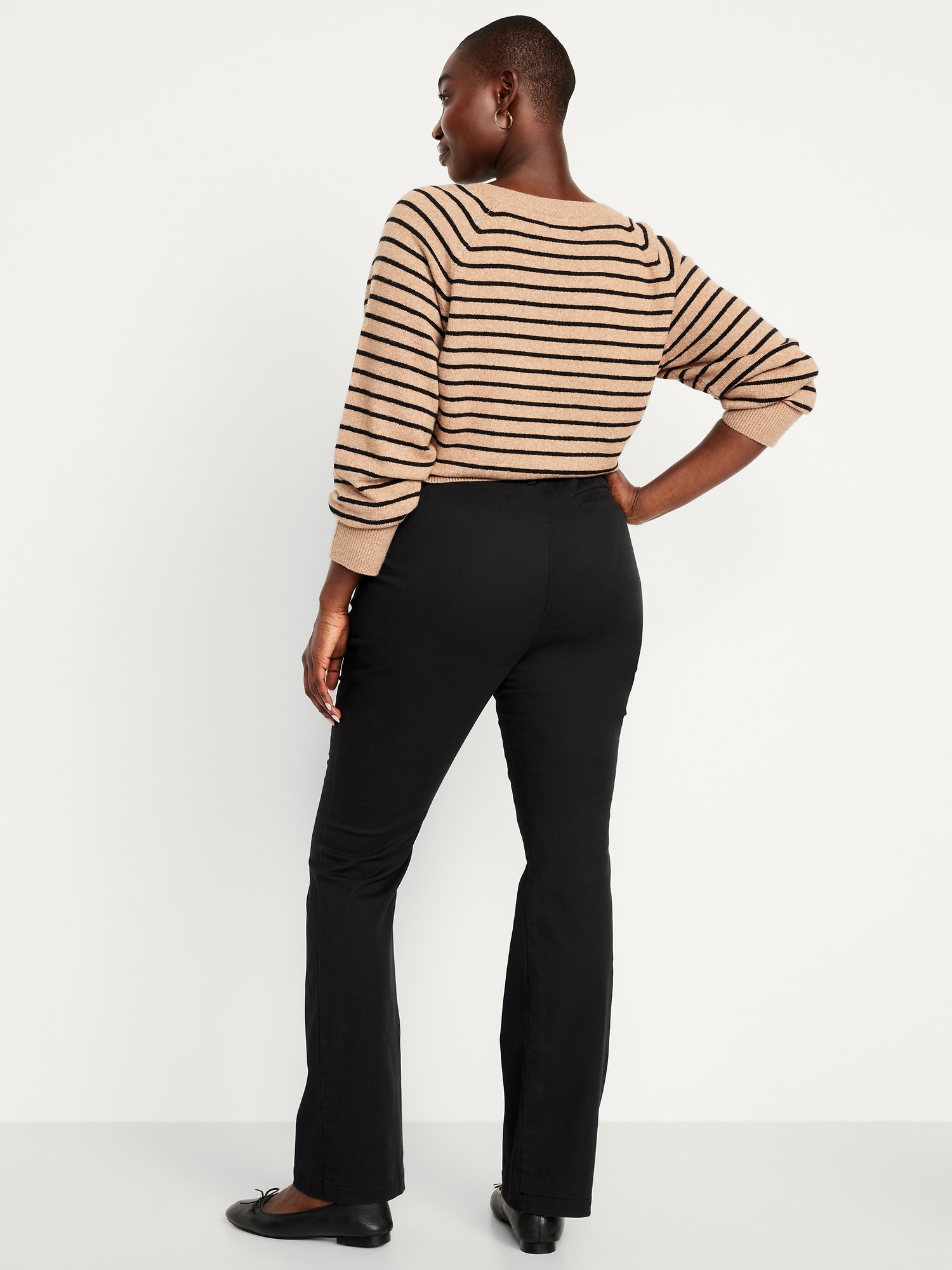 High-Waisted Uniform Boot-Cut Pants: zip fly, front scoop pockets, back right welt pocket, darted back waist, boot-cut leg, #771879