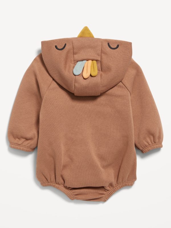 Hooded Critter Fleece One-Piece Romper for Baby: built-in hood, baby chick features at crown, long sleeves, elasticized bubble leg openings, hidden snaps at inseam, #802684