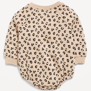 Hooded Critter Fleece One-Piece Romper for Baby: built-in hood, baby chick features at crown, long sleeves, elasticized bubble leg openings, hidden snaps at inseam, #802684