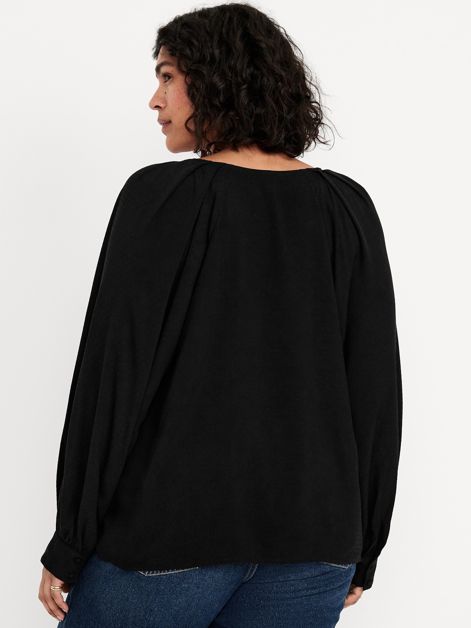 Jacquard Button-Down Top: v-neck, raglan sleeves with buttoned cuffs, full-button front, prints vary, #805742