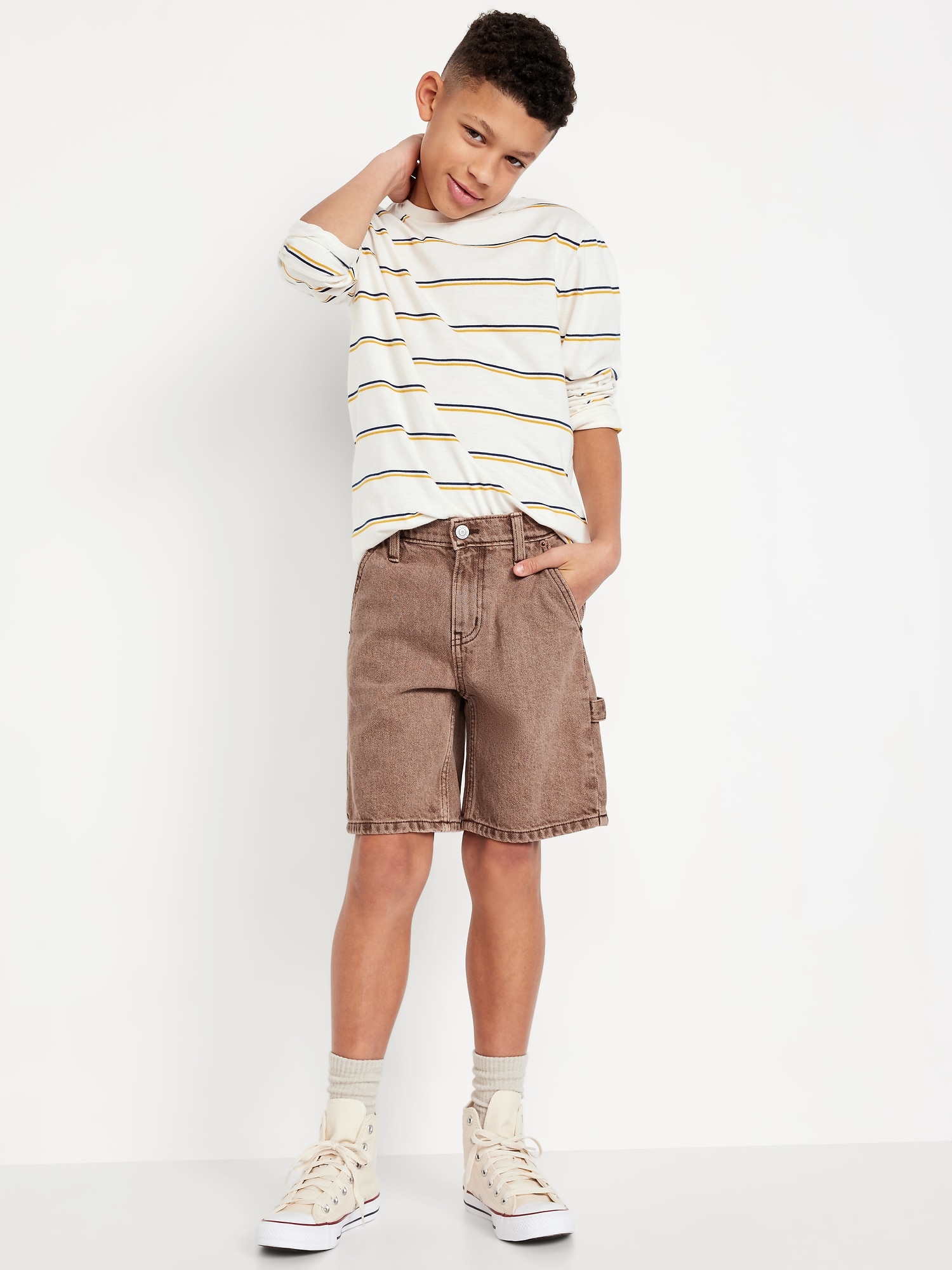 Knee Length Baggy Carpenter Jean Shorts for Boys