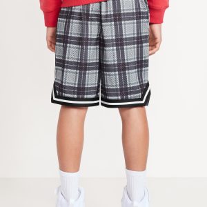 Knee Length Mesh Basketball Shorts for Boys: Made to keep up with all their shenanigans., Elasticized waistband, with adjustable drawstring., On-seam welt pockets., Retro striped tape trim at leg openings and vented sides., Breathable lightweight mesh lets him vent., Smooth, lightweight tricot lining., #875637