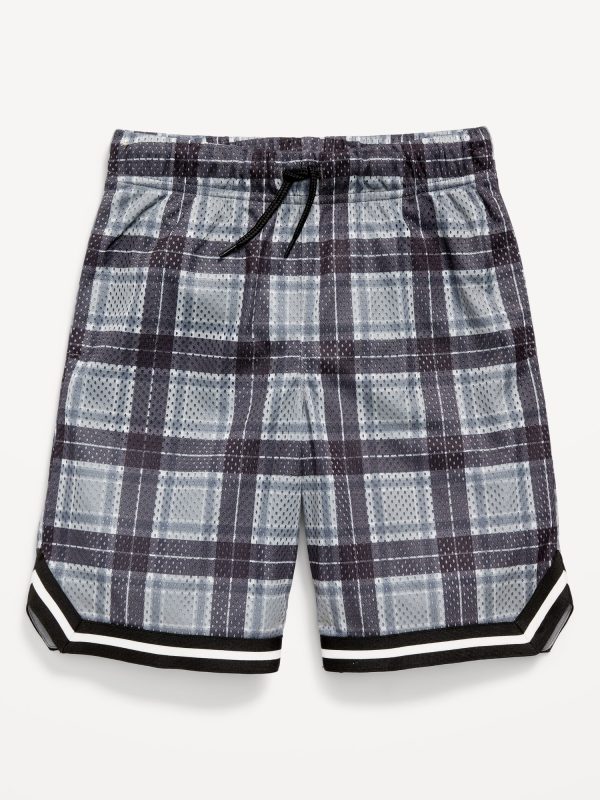 Knee Length Mesh Basketball Shorts for Boys: Made to keep up with all their shenanigans., Elasticized waistband, with adjustable drawstring., On-seam welt pockets., Retro striped tape trim at leg openings and vented sides., Breathable lightweight mesh lets him vent., Smooth, lightweight tricot lining., #875637