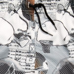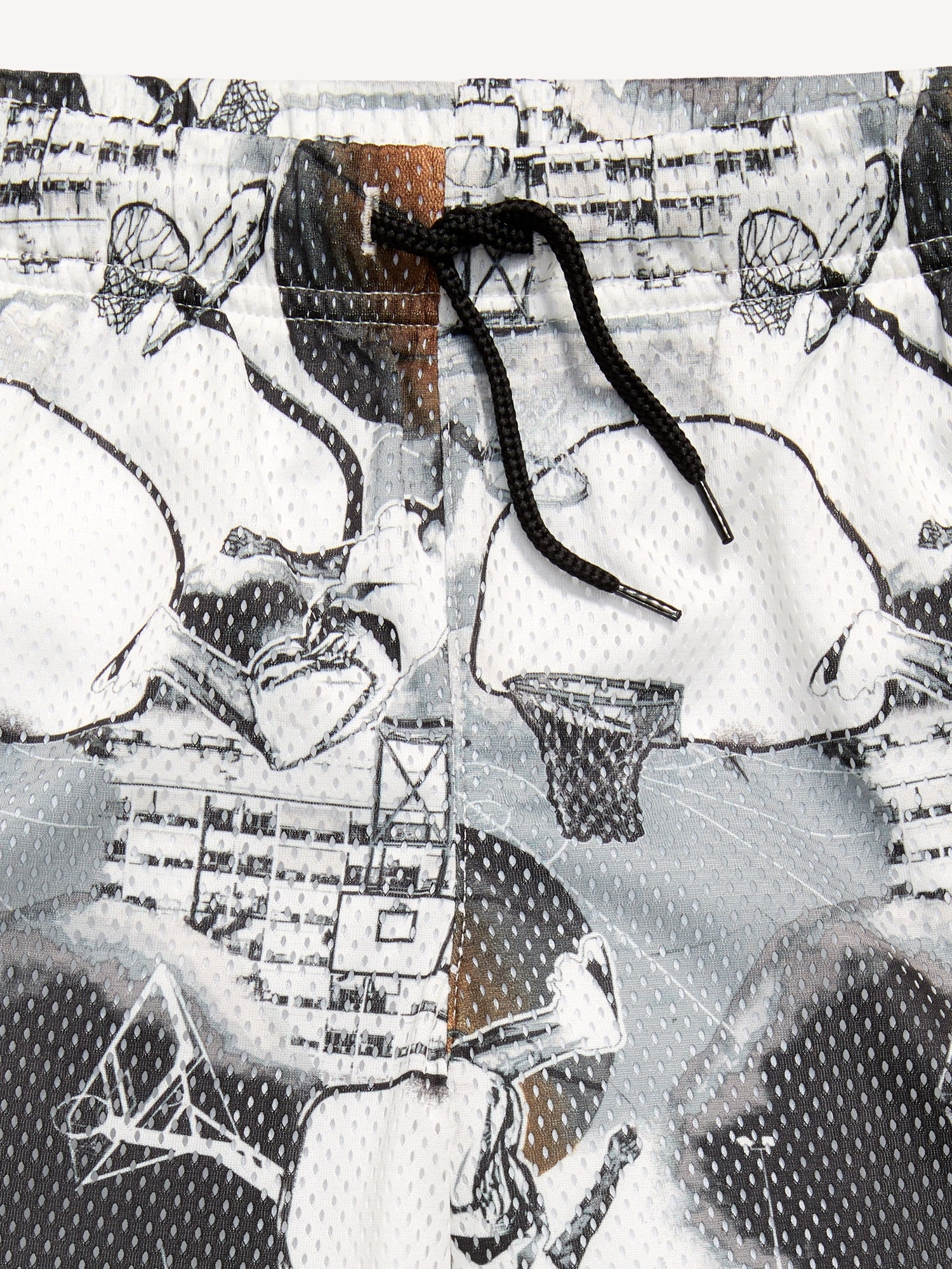 Knee Length Mesh Basketball Shorts for Boys: Made to keep up with all their shenanigans., Elasticized waistband, with adjustable drawstring., On-seam welt pockets., Retro striped tape trim at leg openings and vented sides., Breathable lightweight mesh lets him vent., Smooth, lightweight tricot lining., #875637