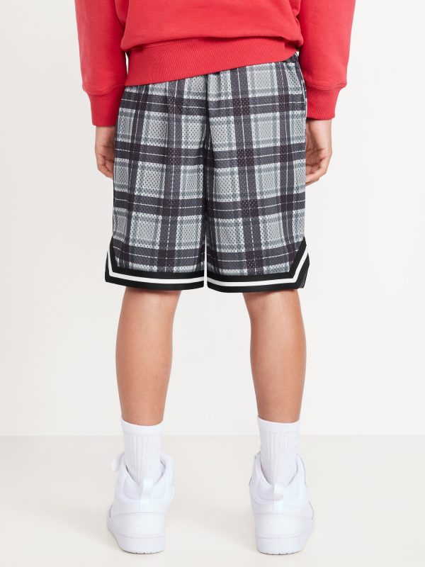 Knee Length Mesh Basketball Shorts for Boys: Made to keep up with all their shenanigans., Elasticized waistband, with adjustable drawstring., On-seam welt pockets., Retro striped tape trim at leg openings and vented sides., Breathable lightweight mesh lets him vent., Smooth, lightweight tricot lining., #875637