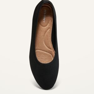 Knit Almond-Toe Ballet Flats: Textured-knit textile upper, with ballet-style foot opening and almond-shaped toe., Soft-knit stretchy fabric keeps you comfortable with every step??, Cushioned insoles made with memory foam. Like walking on fluffy little clouds., Textured thermoplastic rubber outsole, with 1/4″ heel., #673845