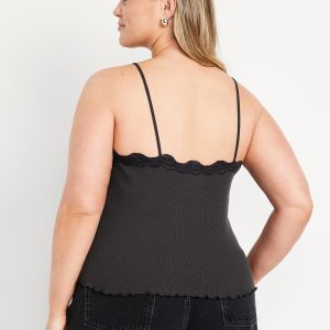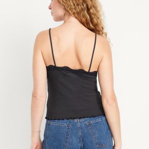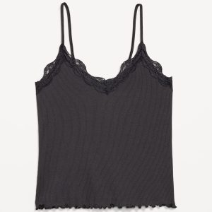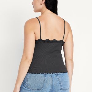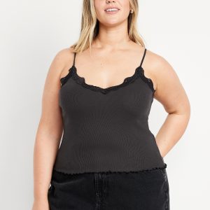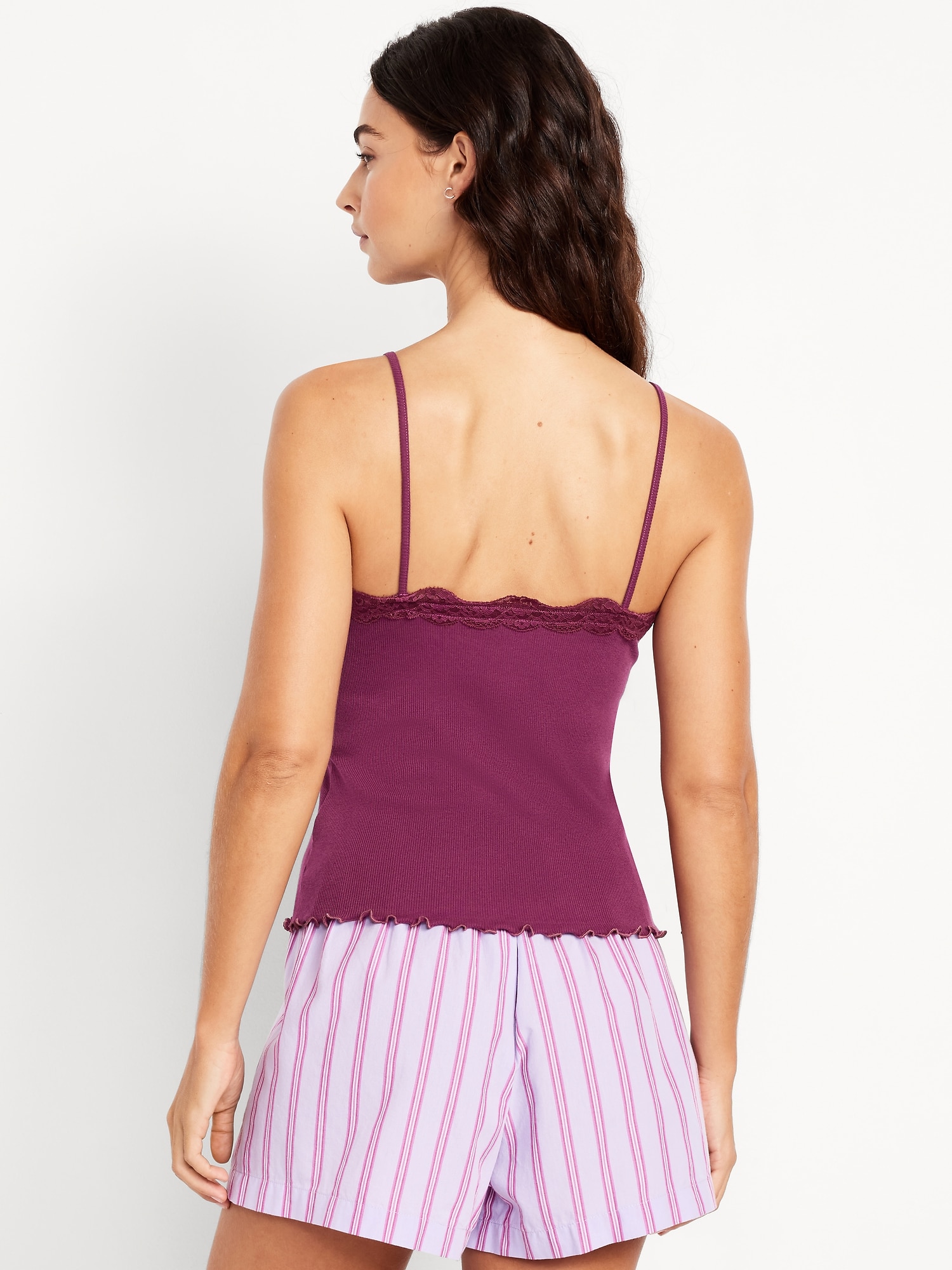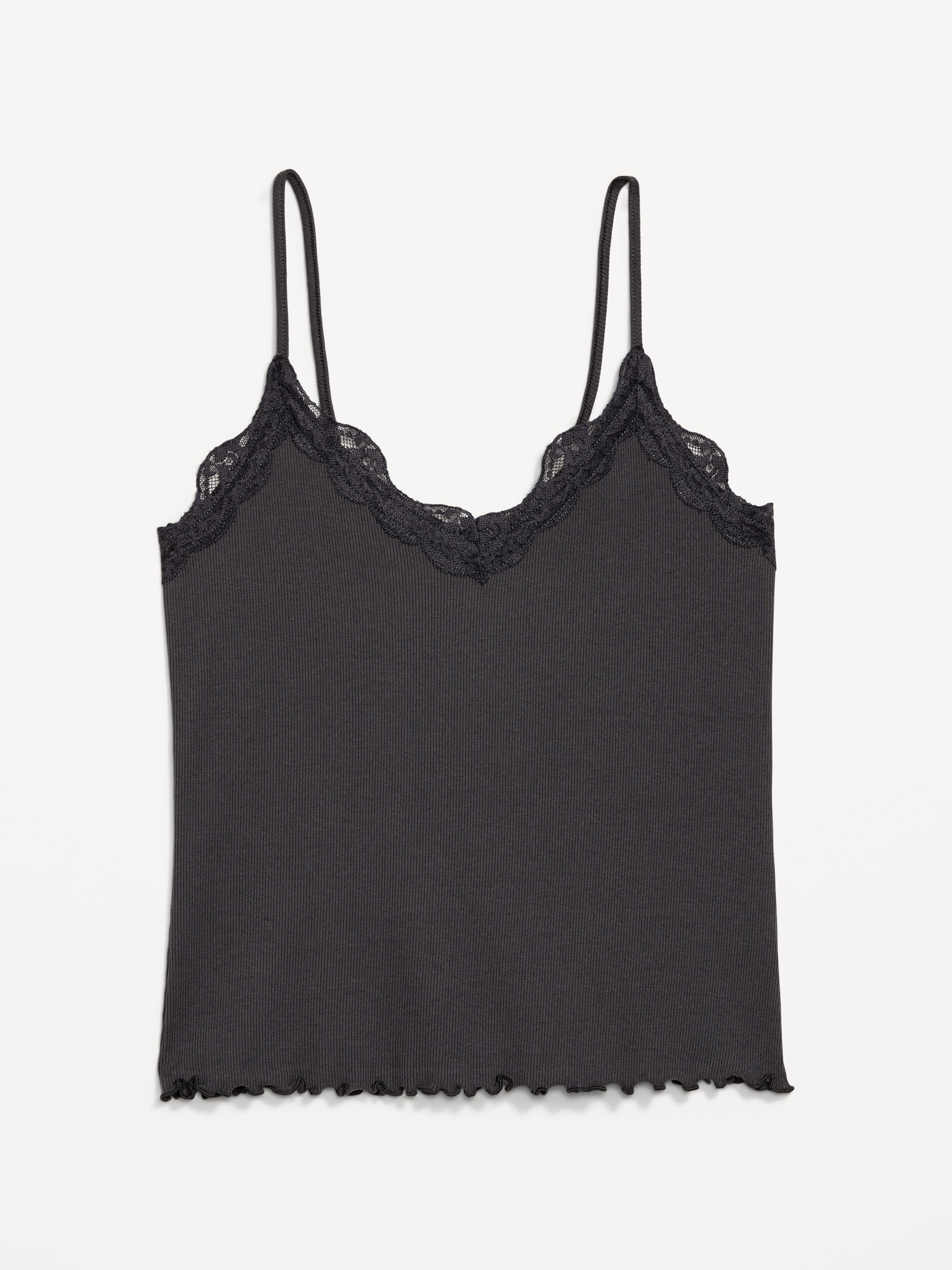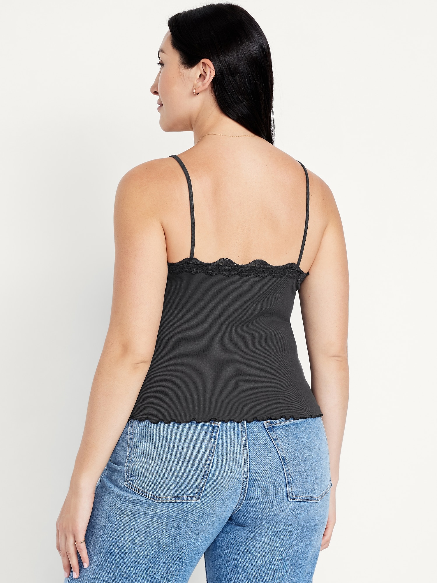 Lace-Trim Cami Tank Top: lace-trim v-neck, adjustable straps, #749270
