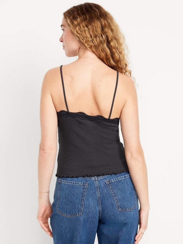 Lace-Trim Cami Tank Top: lace-trim v-neck, adjustable straps, #749270