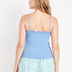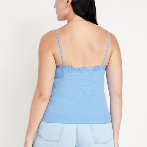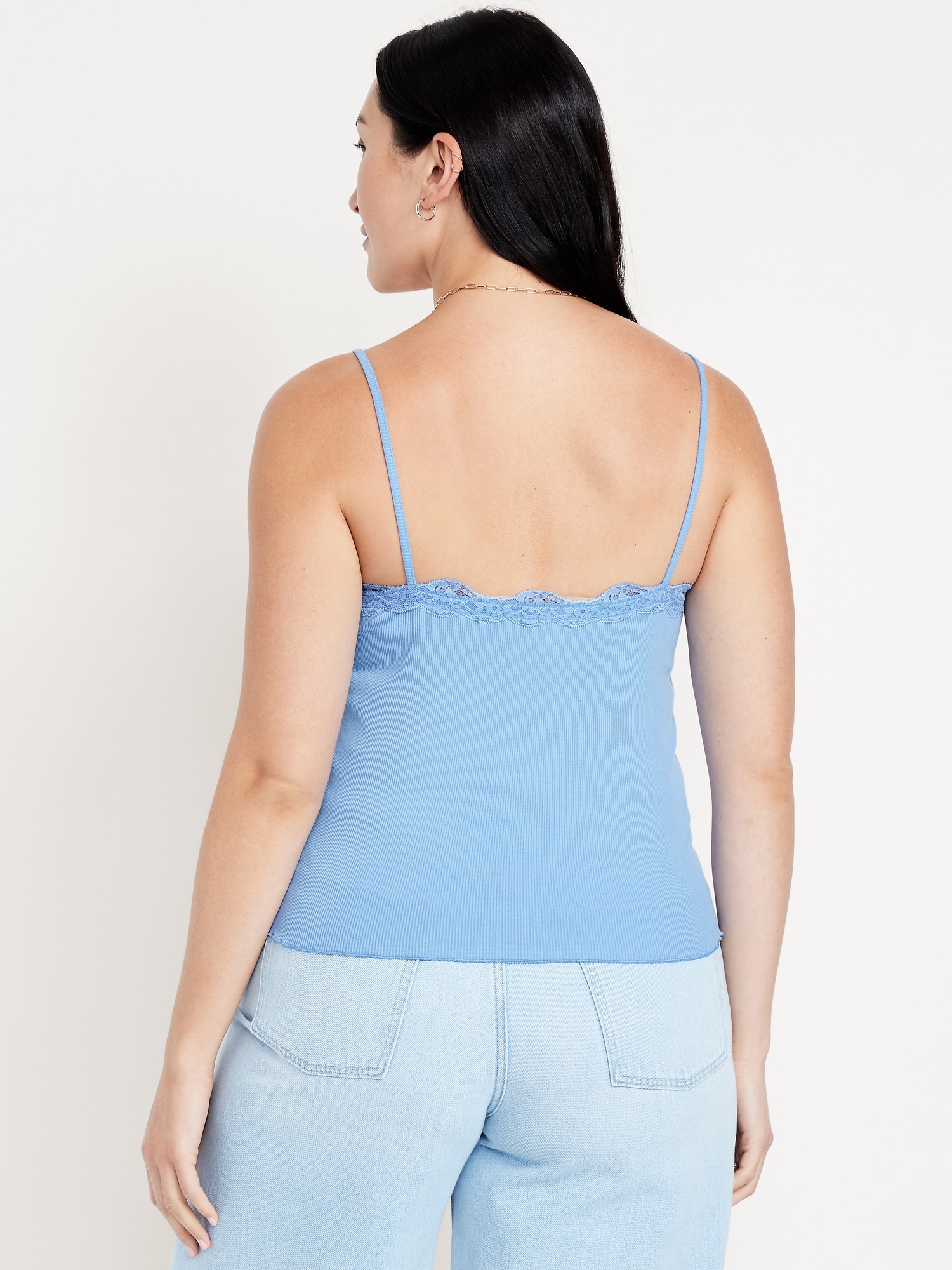 Lace-Trim Cami Tank Top: lace-trim v-neck, adjustable straps, #749270
