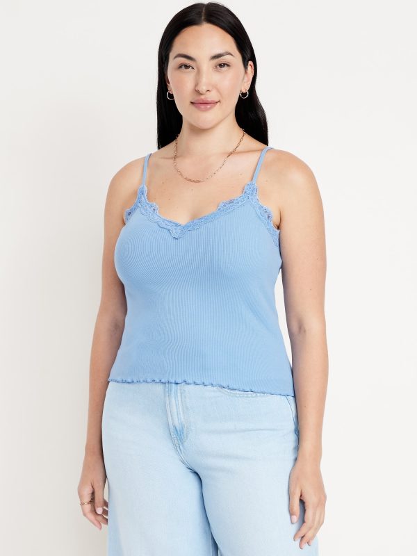 Lace-Trim Cami Tank Top: lace-trim v-neck, adjustable straps, #749270