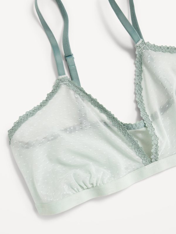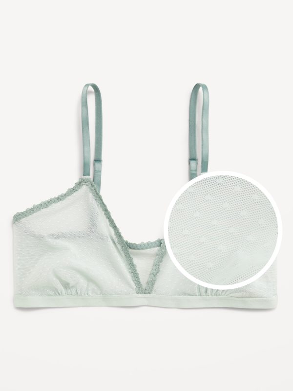 Lace-Trim Dot-Mesh Bralette