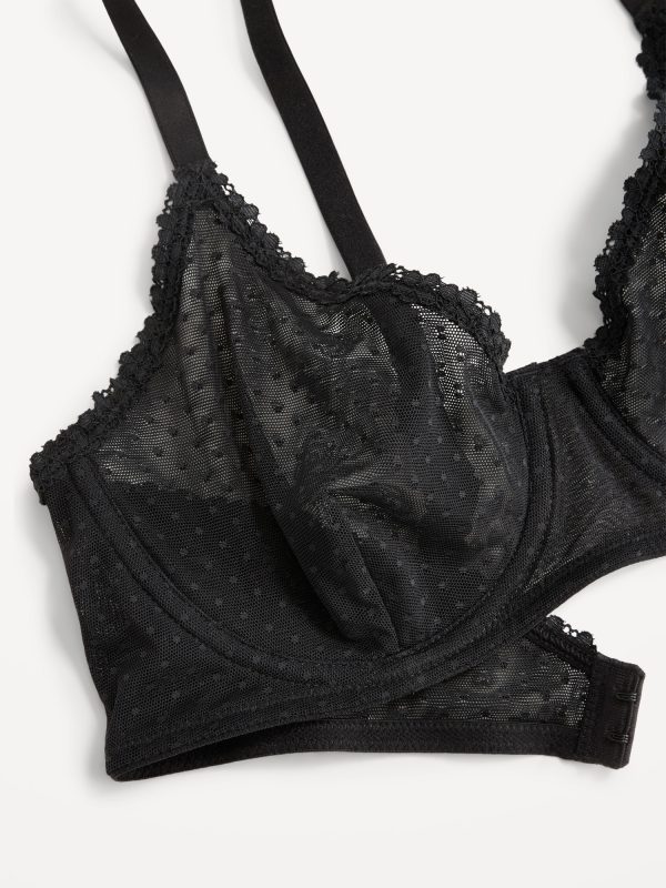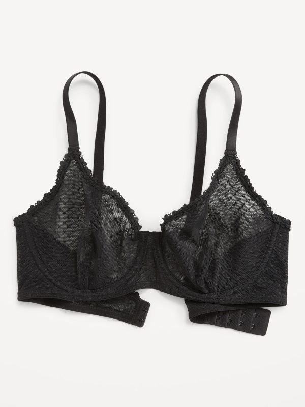 Lace-Trim Mesh-Dot Balconette Bra: lace trim, underwire support, back hook-and-eye closure, #800565