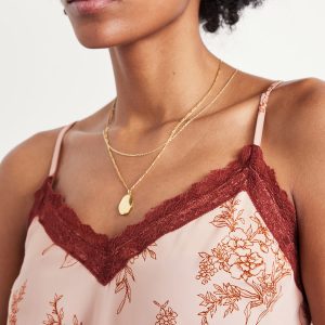 Lace-Trim Satin Cami Top: lace-trim v-neck, adjustable spaghetti straps, darted bust, #798427