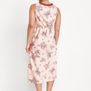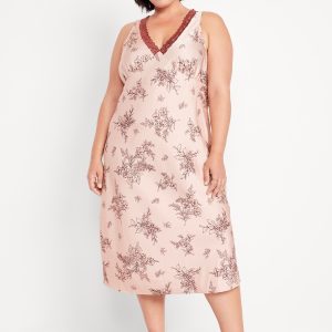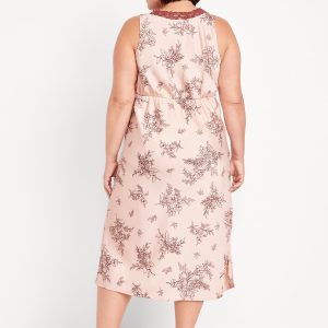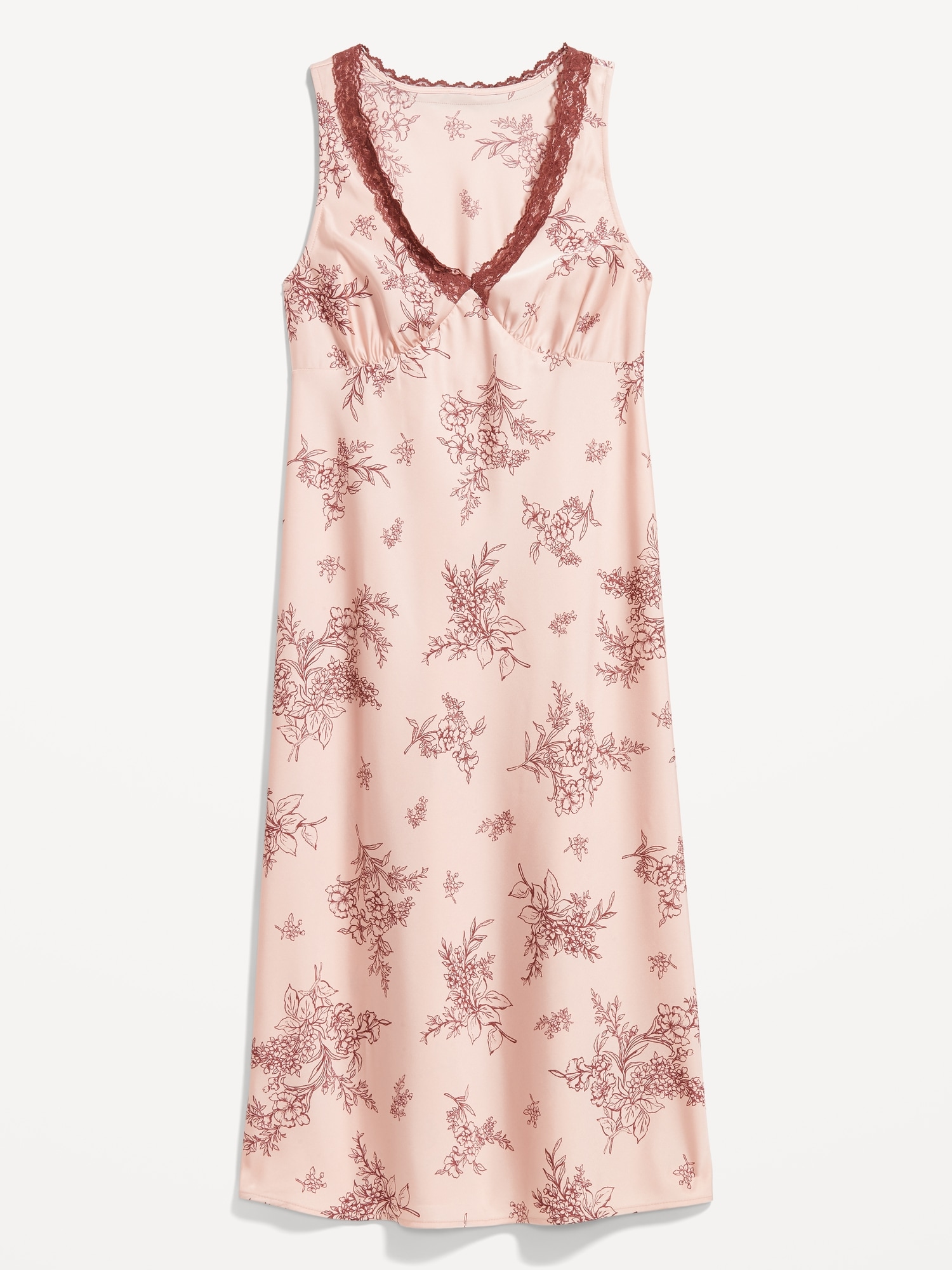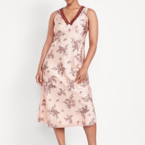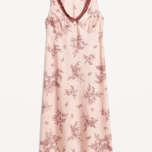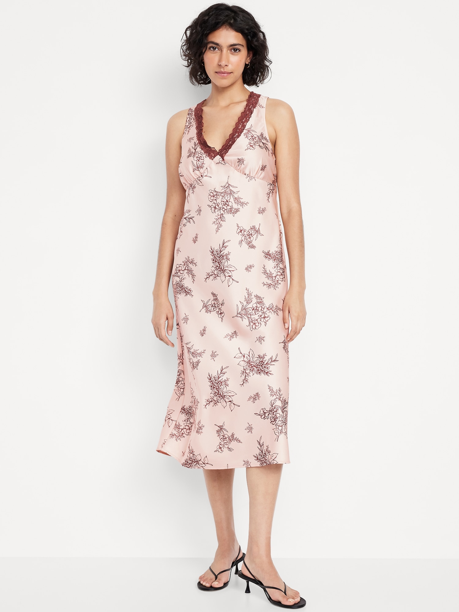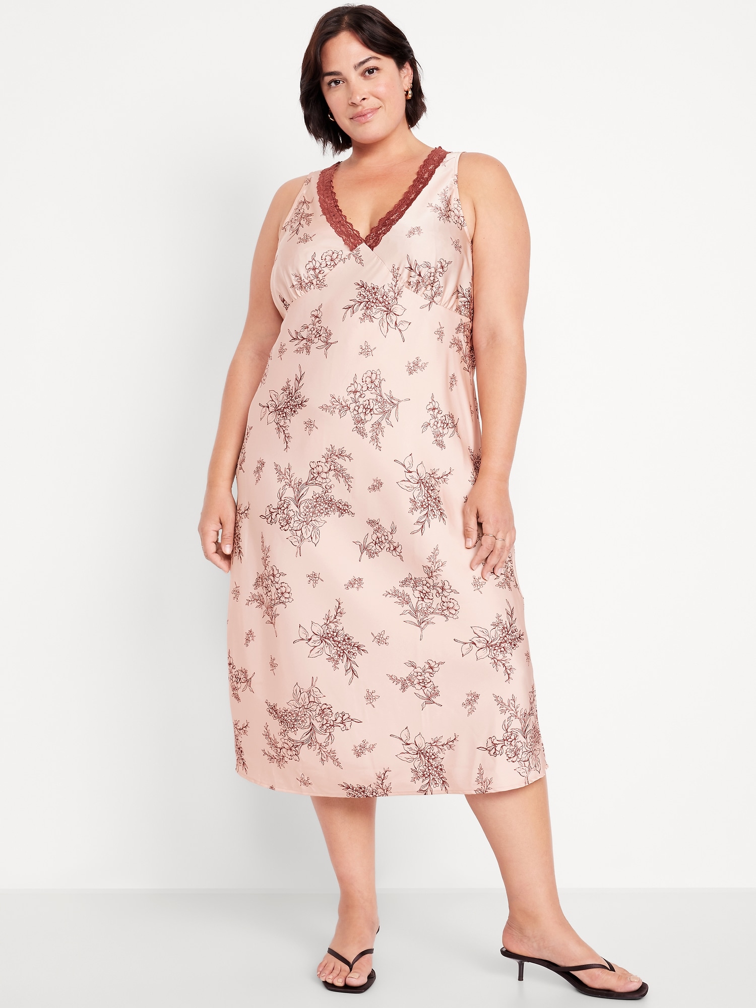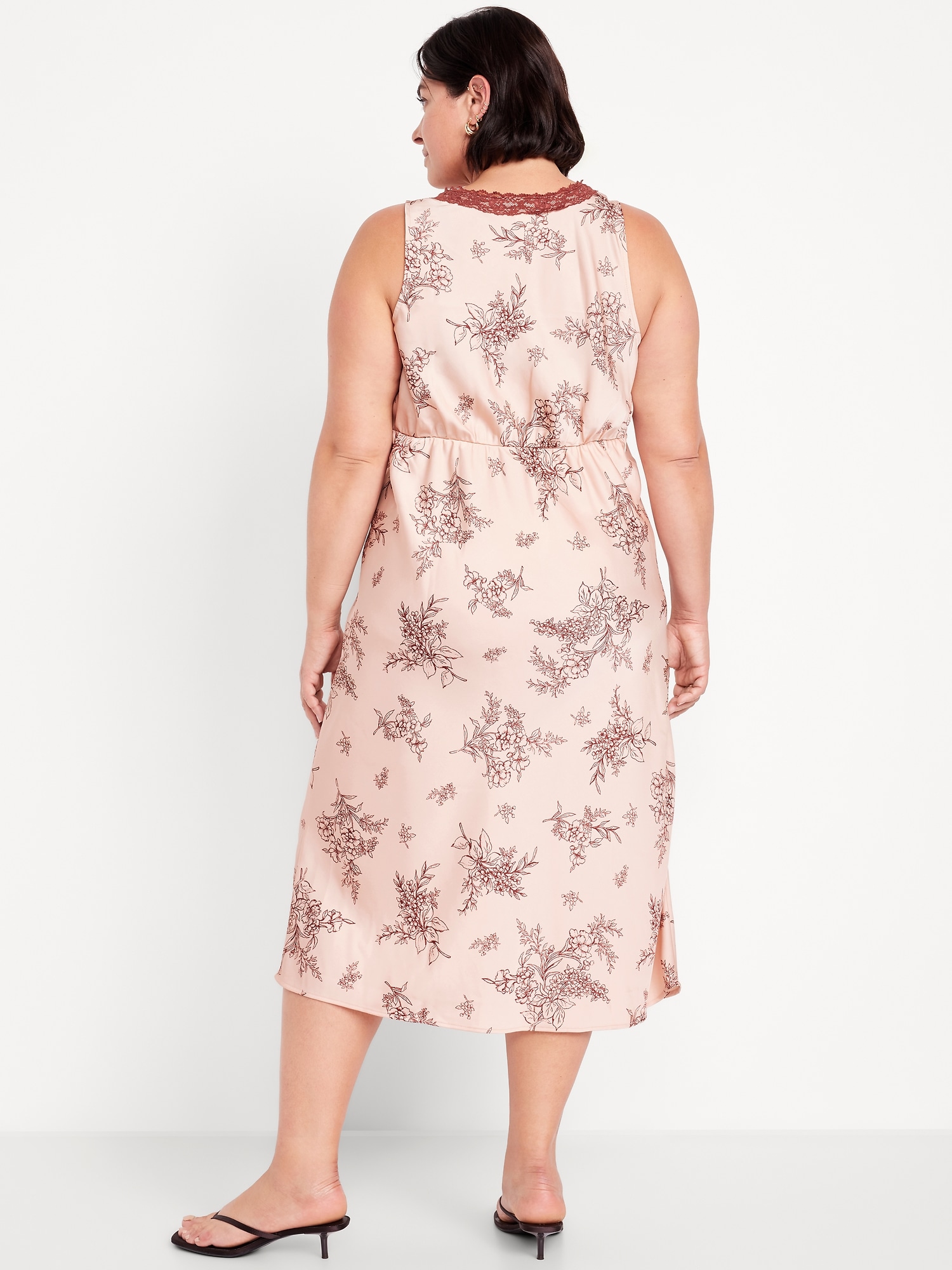Lace-Trim Satin Midi Dress
