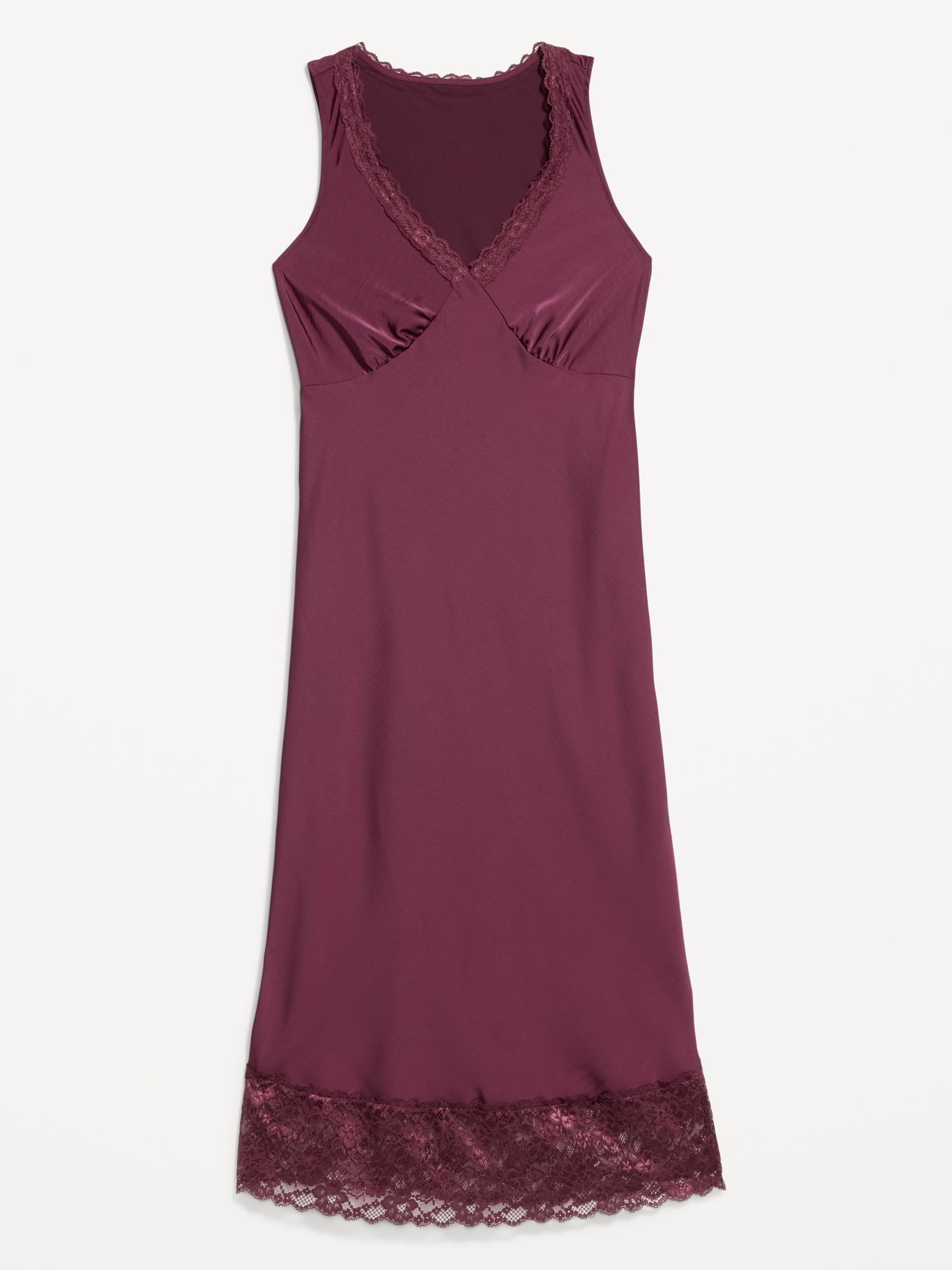 Lace-Trim Satin Midi Dress: lace-trim v-neck, sleeveless, seamed bodice, #798219