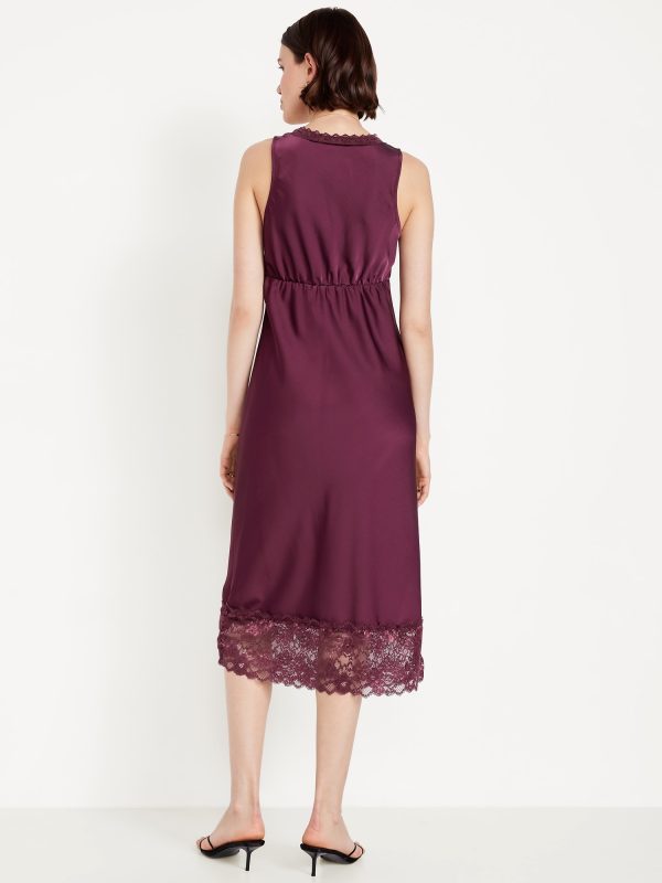 Lace-Trim Satin Midi Dress