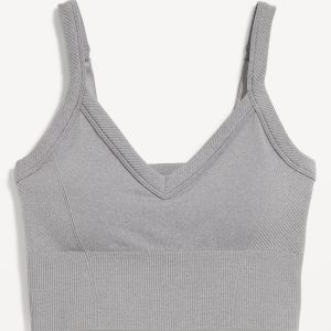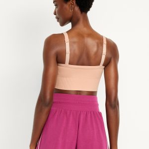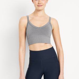 Light Support Fluid Seamless Longline Sports Bra: Featuring Fluid Seamless, for breathable, barely-there feels.plunging v-neck, wide adjustable straps, ribbed panels, bra pads, go-dry wicks moisture, #749261