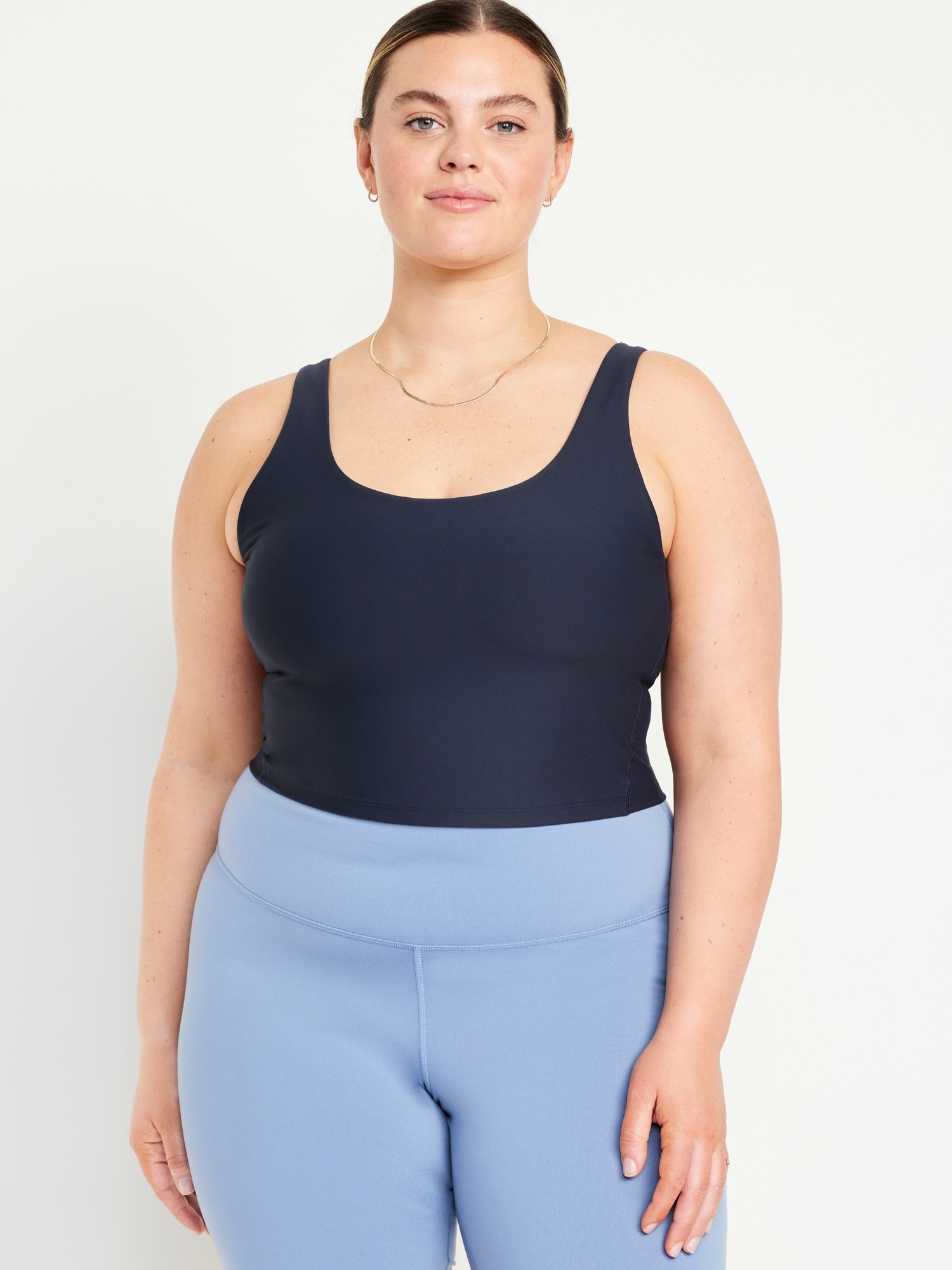 Light Support PowerSoft Longline Sports Bra: Featuring PowerSoft. Light compression meets a peachy-smooth, sweat-wicking fabric.scoop neck, wide straps, removable cups, front mesh lining, go-dry wicks moisture, #723227