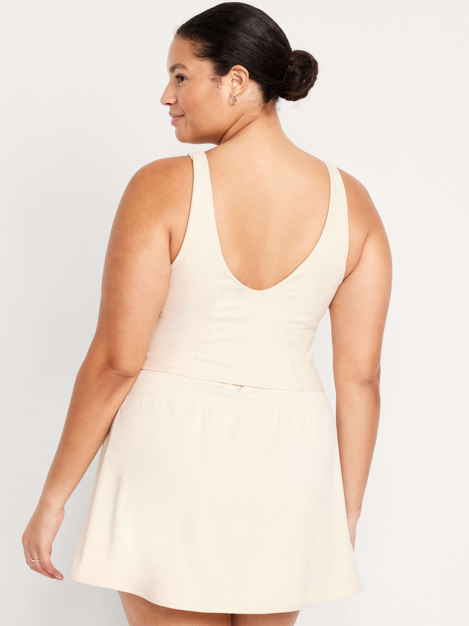 Light Support PowerSoft Longline Sports Bra: Featuring PowerSoft. Light compression meets a peachy-smooth, sweat-wicking fabric.deep v-neck, removable cups, brushed elastic hem, go-dry wicks moisture, #892232