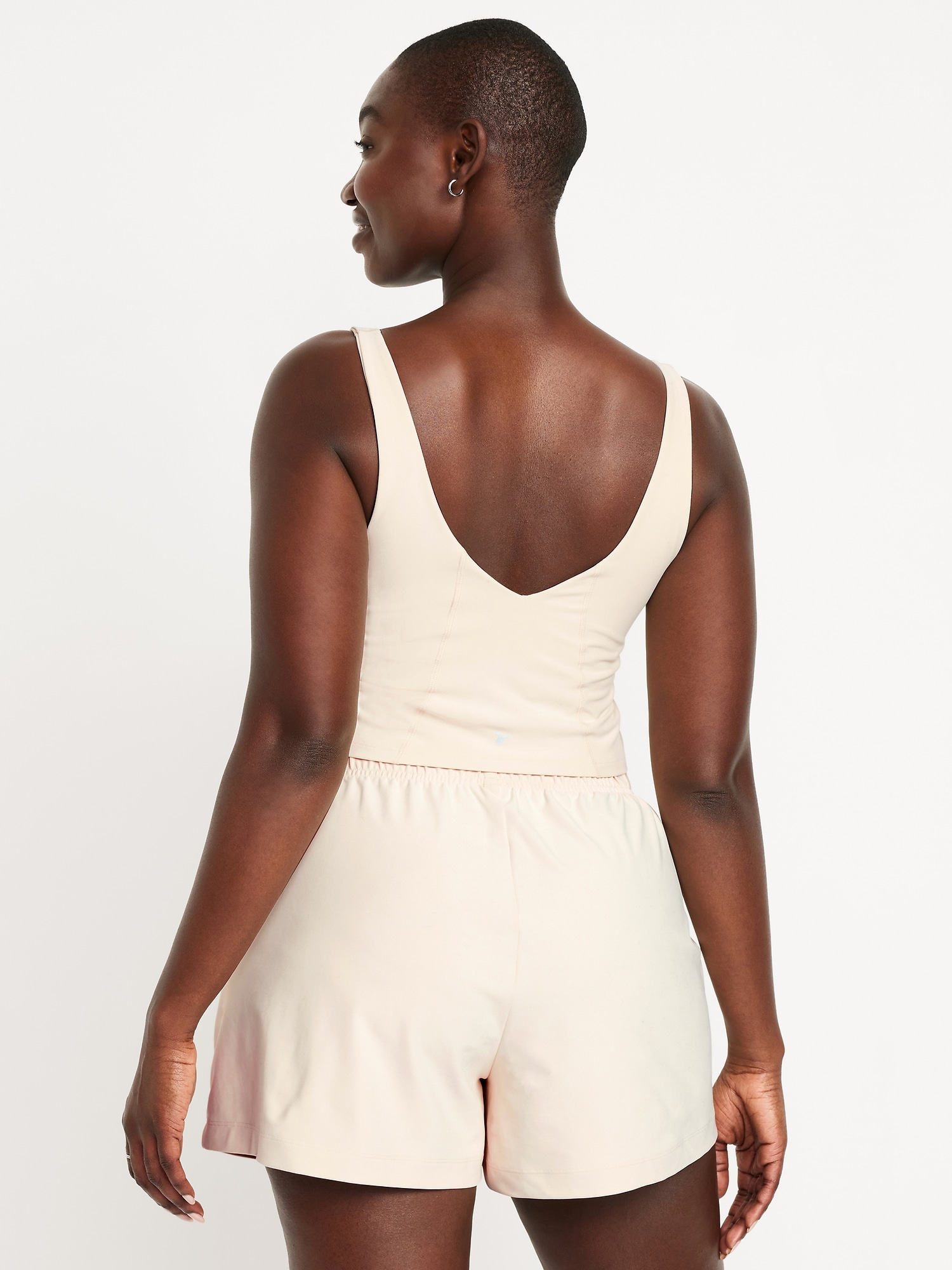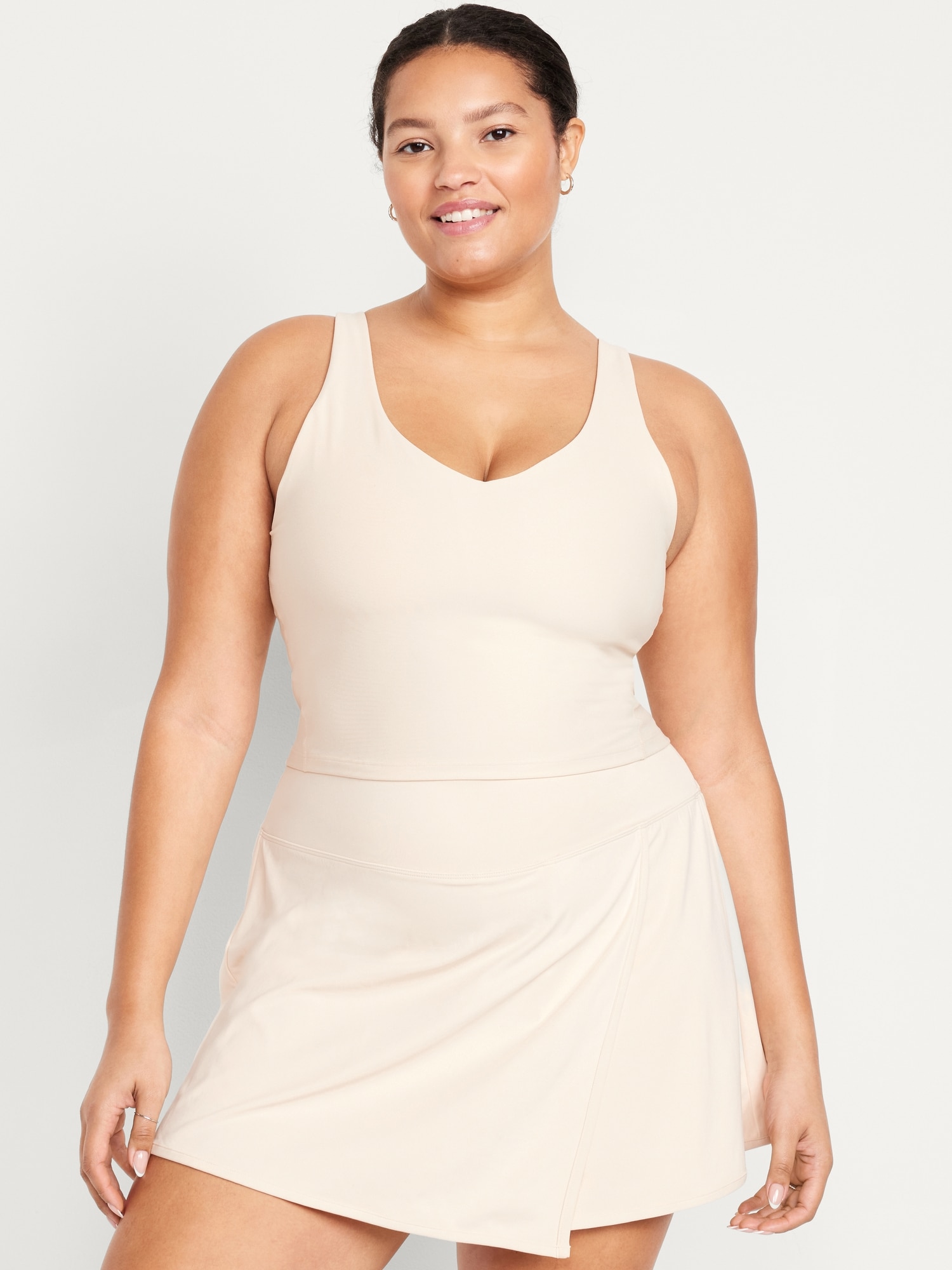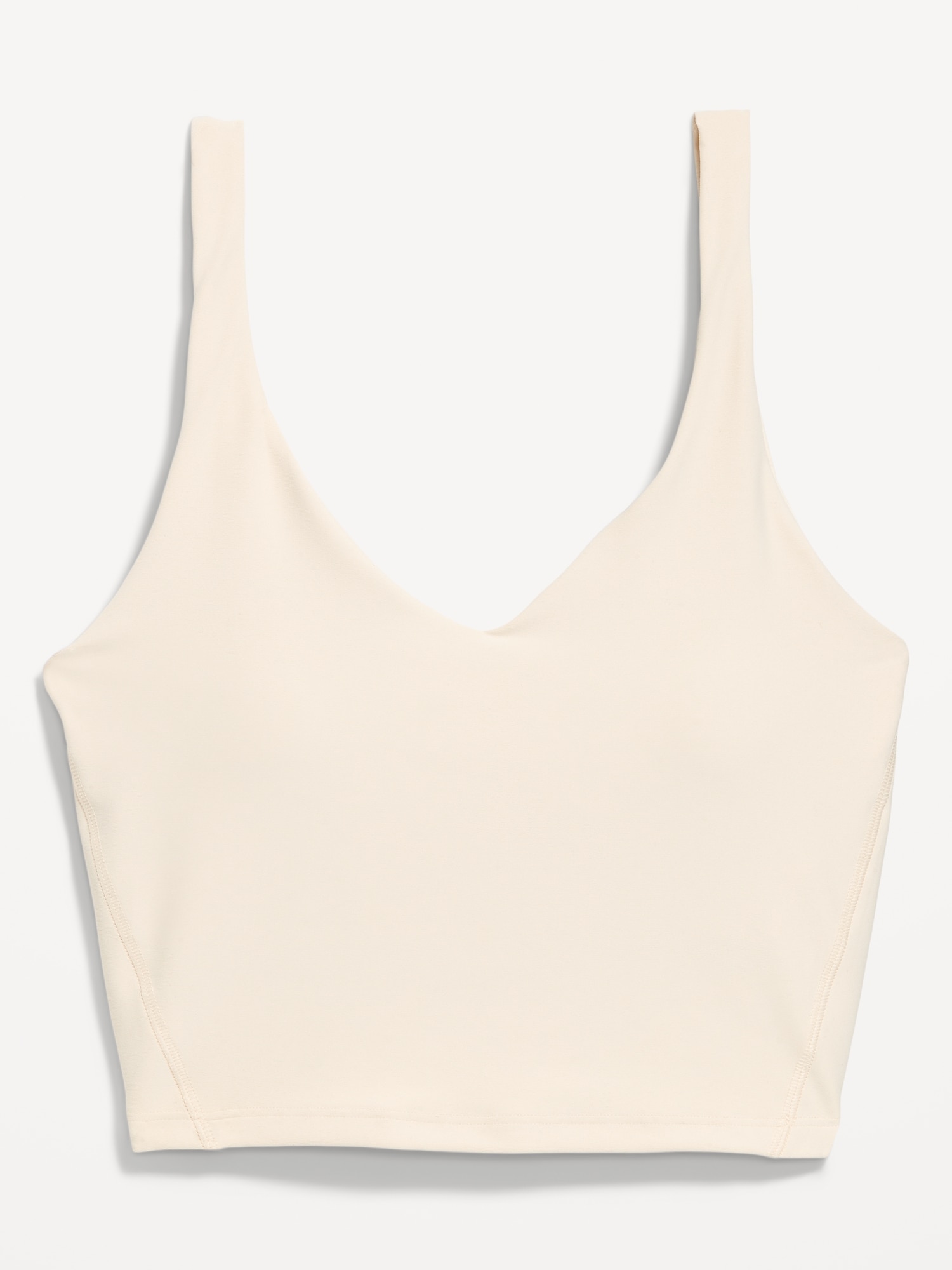Light Support PowerSoft Longline Sports Bra: Featuring PowerSoft. Light compression meets a peachy-smooth, sweat-wicking fabric.deep v-neck, removable cups, brushed elastic hem, go-dry wicks moisture, #892232
