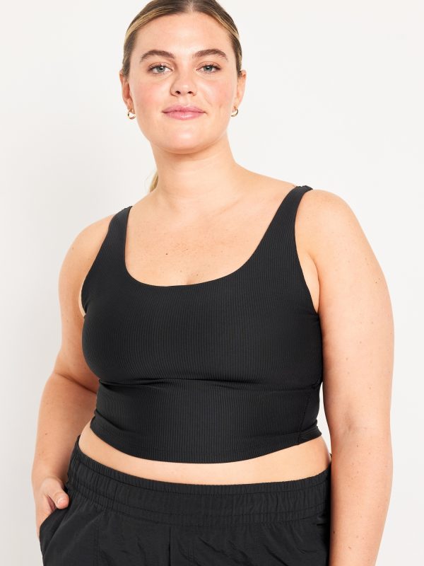 Light Support PowerSoft Rib Longline Sports Bra: Featuring PowerSoft. Light compression meets a peachy-smooth, sweat-wicking fabric.scoop neck, wide straps, removable pads, go-dry wicks moisture, #835594