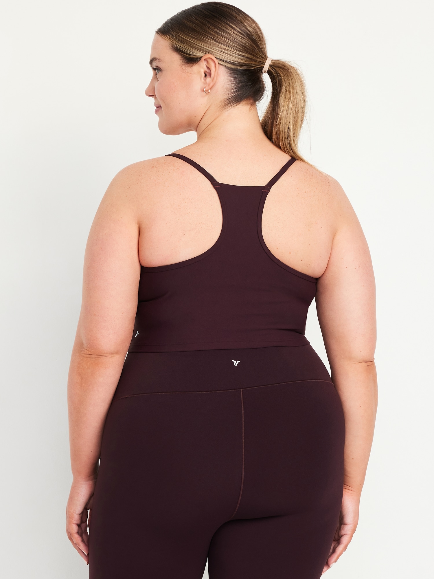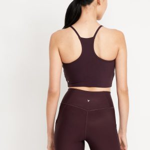 Light Support StudioSmooth Longline Sports Bra: Featuring StudioSmooth. Buttery soft and breathable, with a barely-there feel.high neck, spaghetti straps, removable pads, racerback, go-dry wicks moisture, #694514