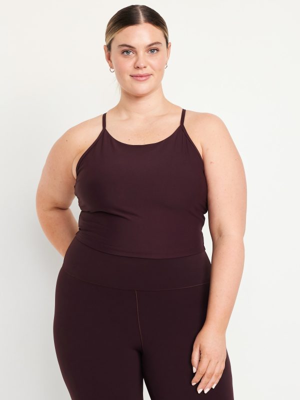 Light Support StudioSmooth Longline Sports Bra: Featuring StudioSmooth. Buttery soft and breathable, with a barely-there feel.high neck, spaghetti straps, removable pads, racerback, go-dry wicks moisture, #694514